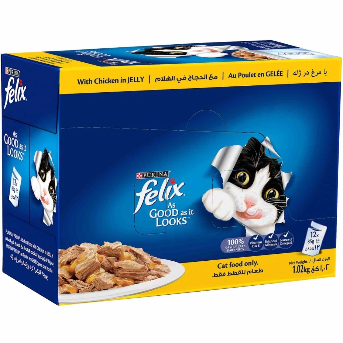Purina Felix As Good As It Looks Adult Cat Food with Chicken in Jelly is a delicious and nutritious wet cat food that comes in convenient 85g packs of 12. Made with high-quality ingredients, this food provides a balanced diet for adult cats, keeping them healthy and satisfied.
