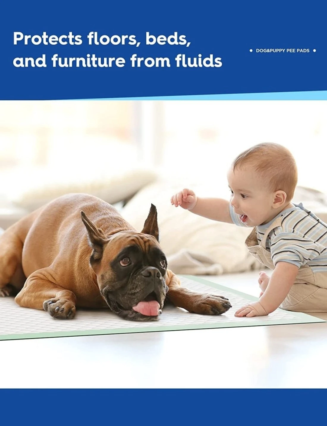 【High Quality Materials & All Day Protection】 features premium materials, the upgraded pet pads for dogs are of excellent quality and resistant to scratch and tear. Our pee pads for puppies can be used for at least one day. You no longer have to worry about floor or furniture being damaged by pet's urine.