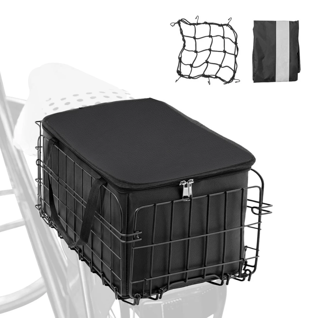 【High Quality Material】Our rear bike baskets is made of high-quality metal for more durable and stable load-bearing. And it's also rust-resistant coated, perfect for city travel, commuting. This metal bicycle rear basket you can trust which is essentials of your bike, 【Large Capacity】Bike rack basket unfold 13.4"L x 9.1"W x 7.9"H space to carry large loads which is capable of supporting the weight of up to 56 lbs. It's a ideal for carrying grocery, flowers, pets, daily shopping, or serving as a delivery bike basket, 【Foldable&Multifunction】Adult bike rear basket is easily collapsible for tight storage in the trunk of a car or bike bag. bike basket is folded originally, lift the buckle from the folded basket, just push it a little bit, it will open. Also can be widely used to carry pets, school, shopping, picnic, or outdoor, 【Waterproof &Safe Design】The bike rear basket comes with a reflective waterproof cover keep your stuff safe even in drizzly conditions or nights. The liner bag made of long lasting Oxford cloth, features an external pocket for convenience, 【Easy Installation】This bike rear basket is easy install it simply attach the mounting bars, tighten 4 screws. Package includes: bike rear basket x 1, portable liner bag x1, reflective waterproof covers x 1, elastic cargo net x1, bicycle reflector x 1, bike straps x 1, screw &nuts x 4, mounting bars x4, zip ties x8