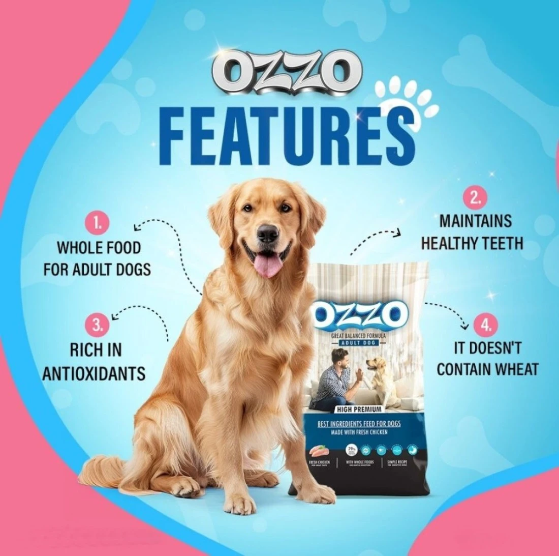 OZZO High Premium Adult Dog Dry Food – Fresh Chicken, Balanced Diet, Omega-Rich, Free from Corn & Wheat 15 Kg