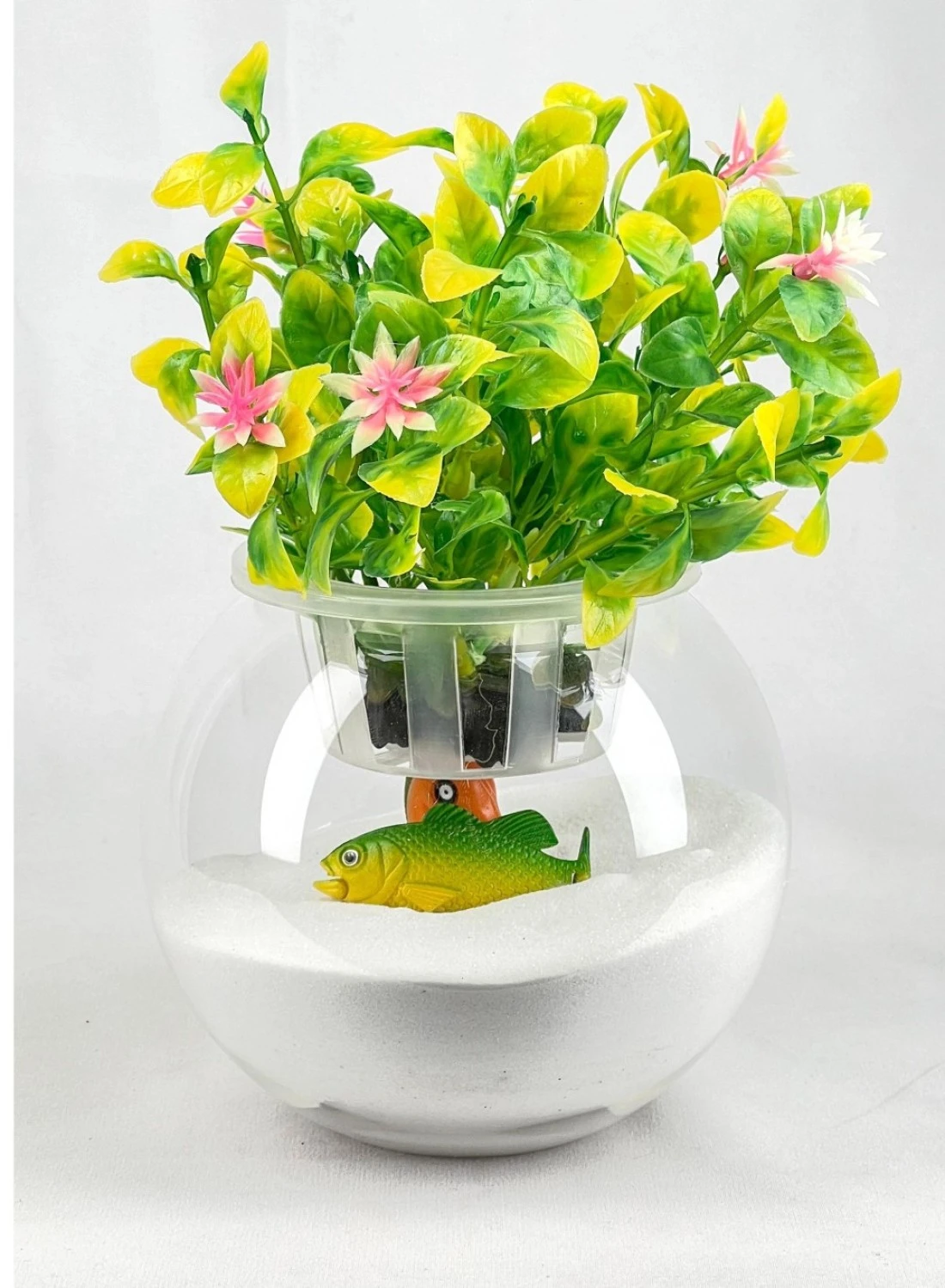 Glass Aquarium Bowl 4.5-Inch with Integrated Decorative Plant Holder with Lid (Medium)