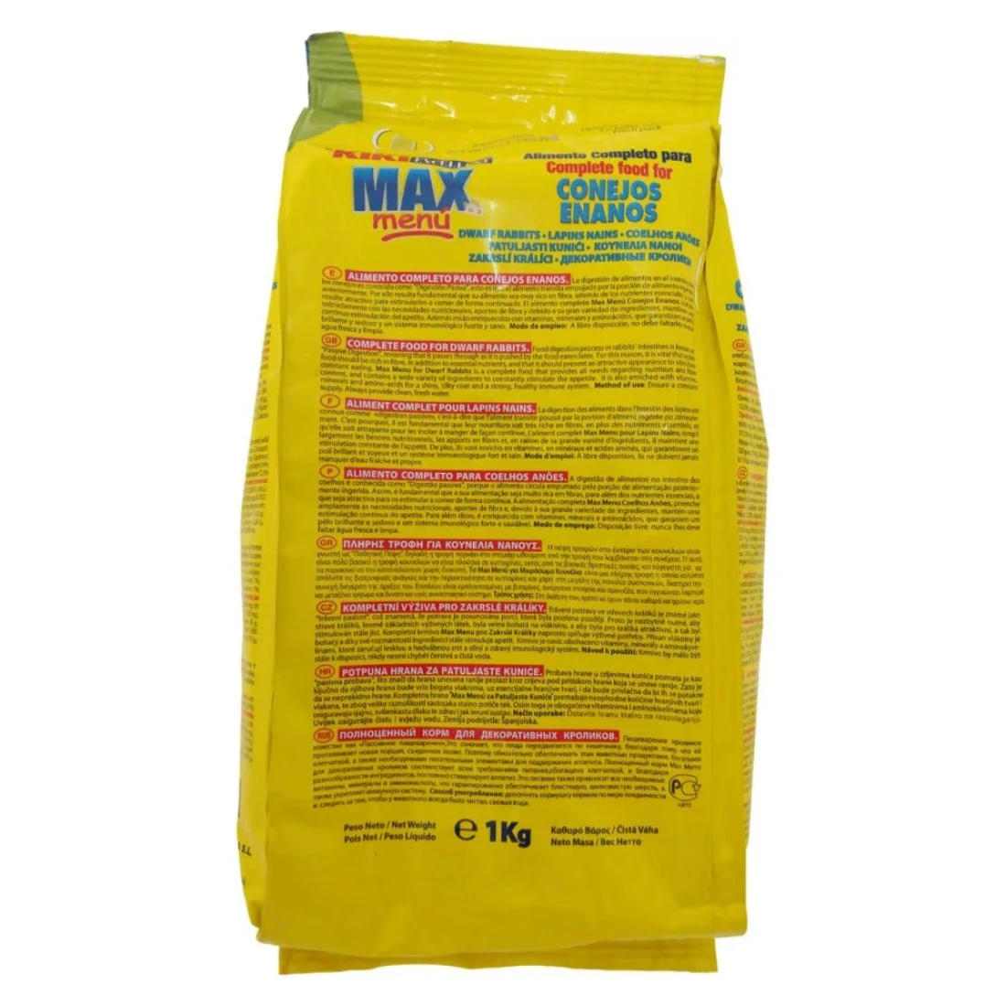Kiki Excellent Max Menu Rabbit Dry Food is a high-quality rabbit food that provides essential nutrients for your pet rabbit's overall health and well-being. This 1kg pack is specially formulated to meet the dietary needs of rabbits, promoting healthy digestion, strong teeth, and a shiny coat. It contains a balanced blend of ingredients including grains, vegetables, and fruits, ensuring a delicious and nutritious meal for your furry friend.