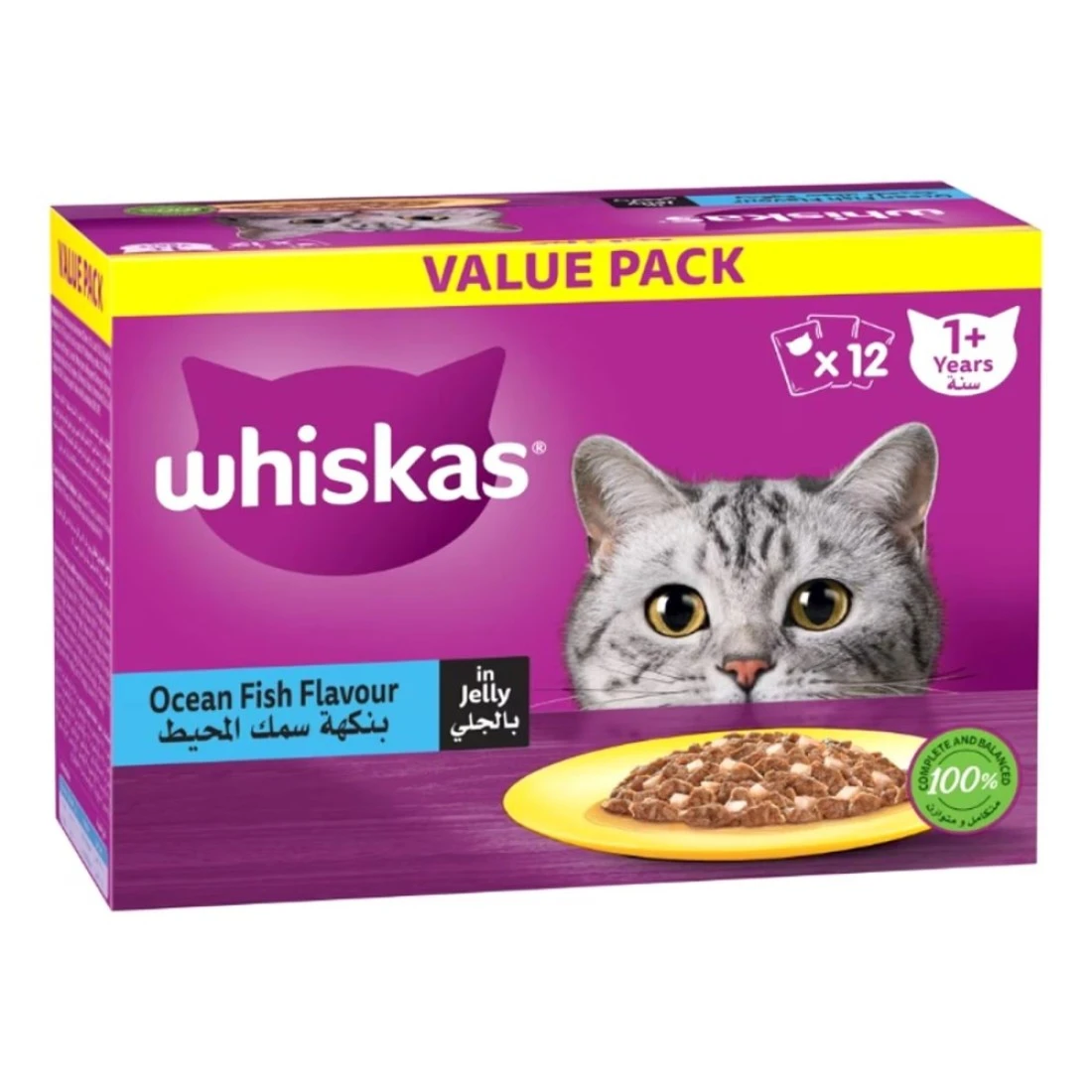 Whiskas Ocean Fish Flavour in Jelly Cat Wet Food is a delicious and nutritious meal specially formulated for cats aged 1 year and above. This pack contains 12 individual 80g pouches of ocean fish flavoured cat food in jelly, providing a balanced and complete diet for your feline friend.