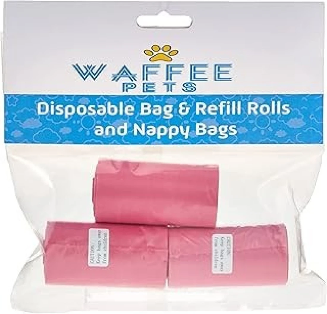 Waffee Pet Dog Waste Bags, Poo Pack Of 3 Rolls (60 Bags)-Pink
