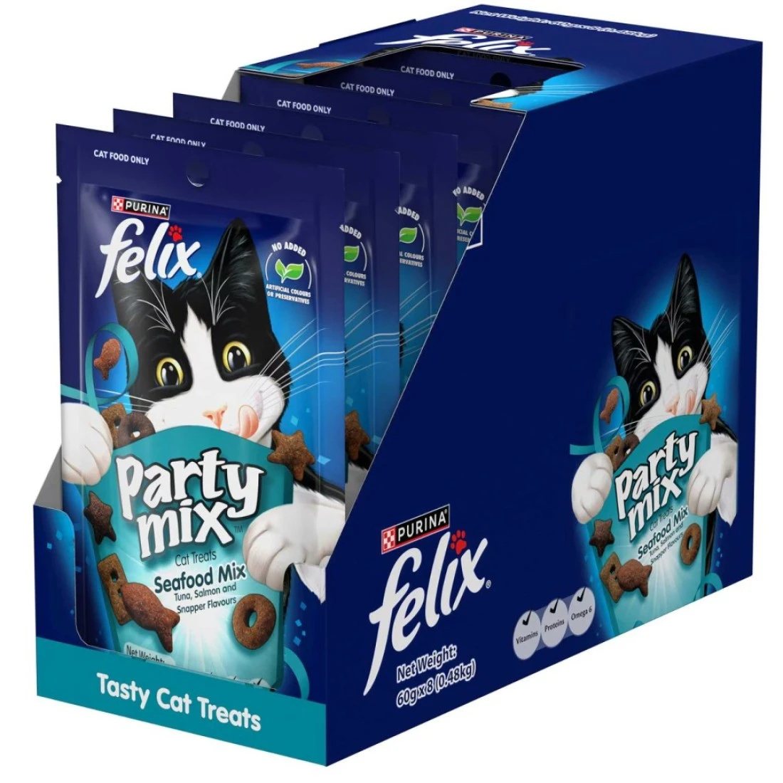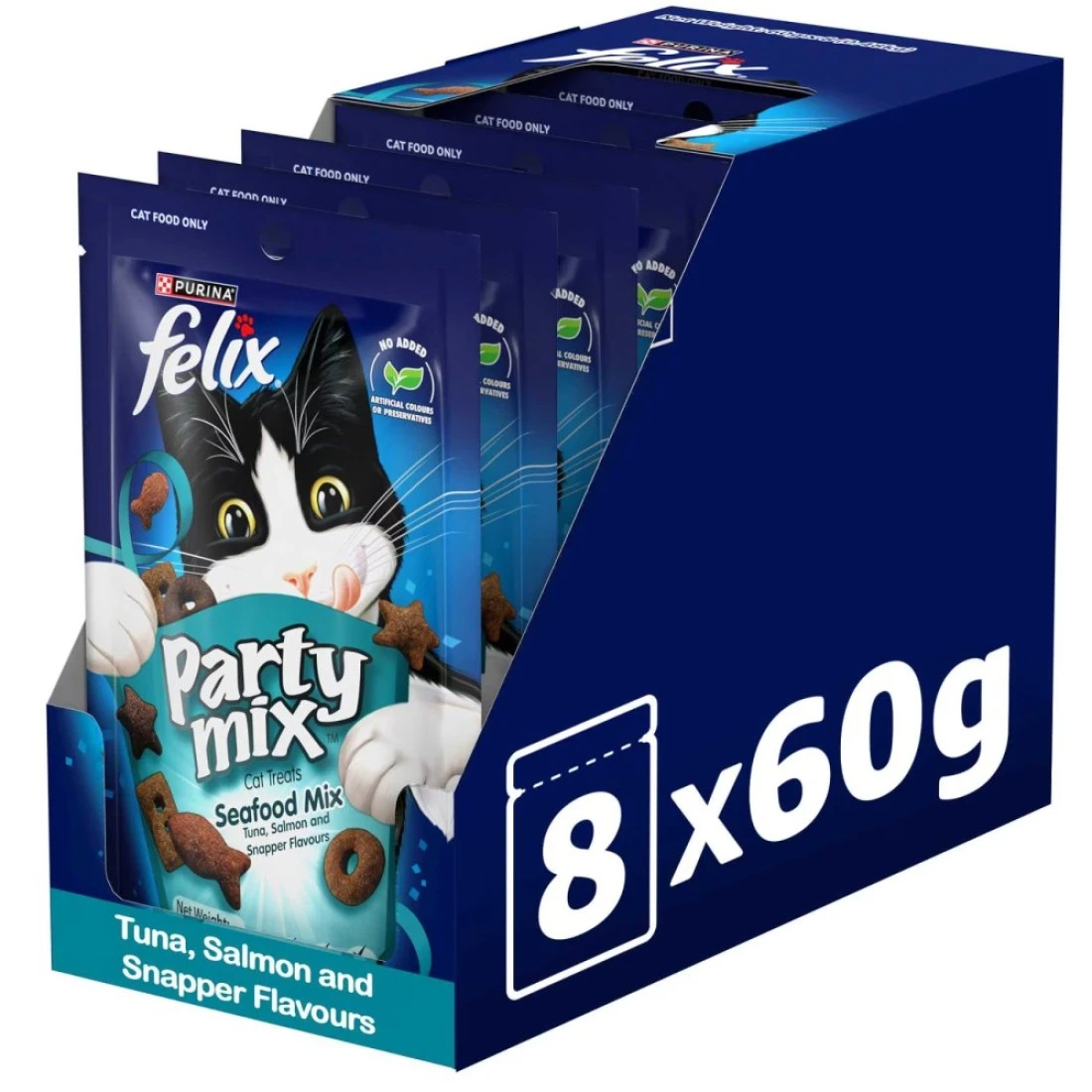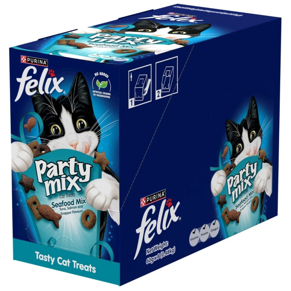 Purina Felix Party Mix Seafood Mix Dry Cat Treats, 60g Pack of 8