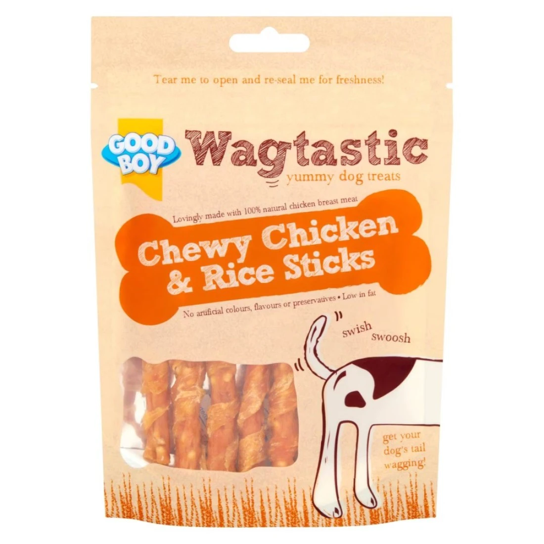 The Good Boy Wagtastic Chewy Chicken and Rice Sticks are a delicious and nutritious treat for dogs. Made with real chicken and rice, these sticks provide a tasty and satisfying chew for your furry friend. They are perfect for rewarding good behaviour or as a special treat. These sticks are also a great way to keep your dog entertained and promote dental health. Give your dog the Wagtastic Chewy Chicken and Rice Sticks for a wagging tail and happy taste buds!