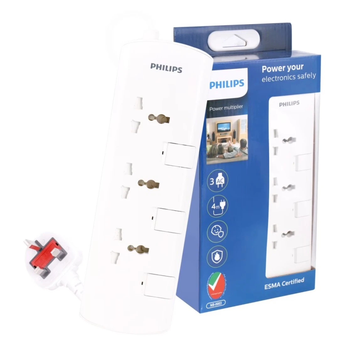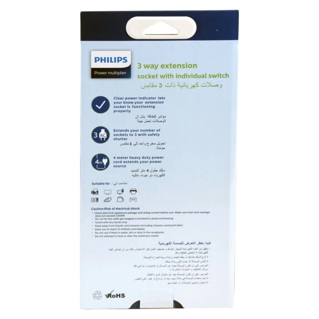 Philips 3 Way Extension Socket with Individual Switch 4m