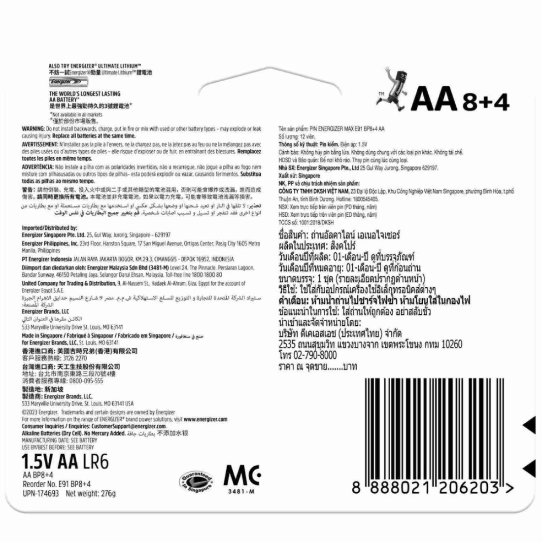 Energizer Max AA Alkaline Batteries 1.5V Pack of 12