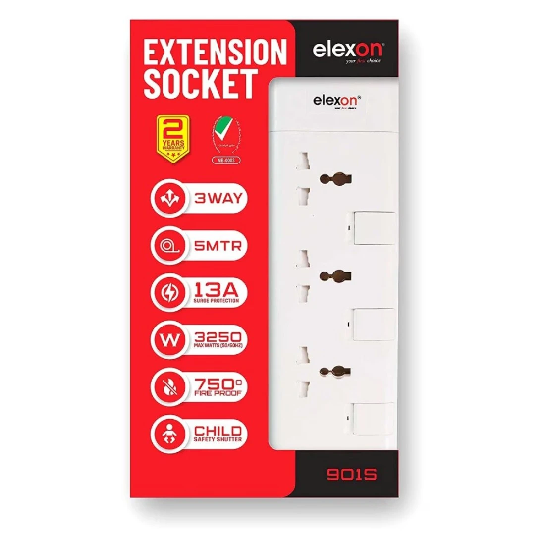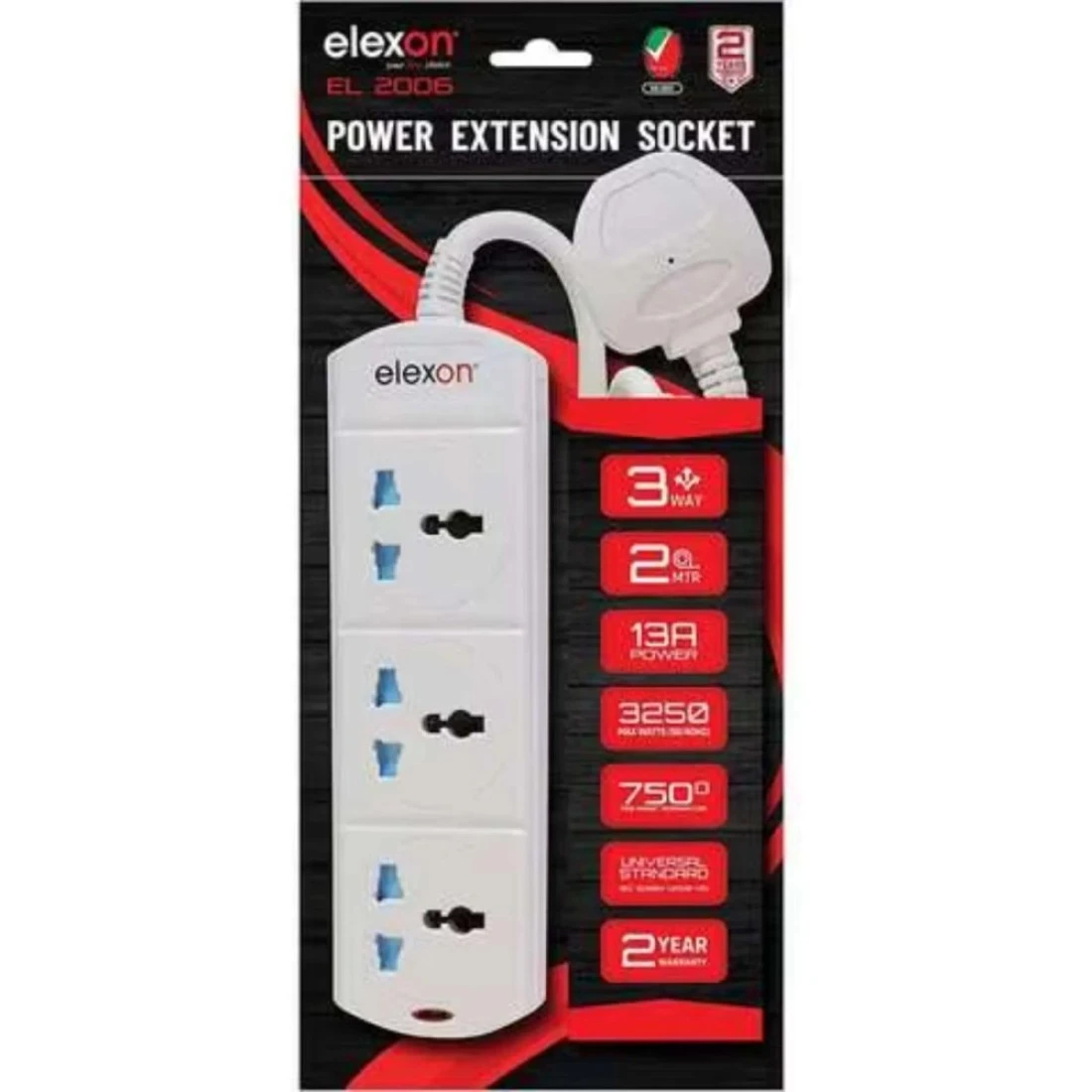 Elexon 3-Way Power Extension Socket 13A El-2006 2m