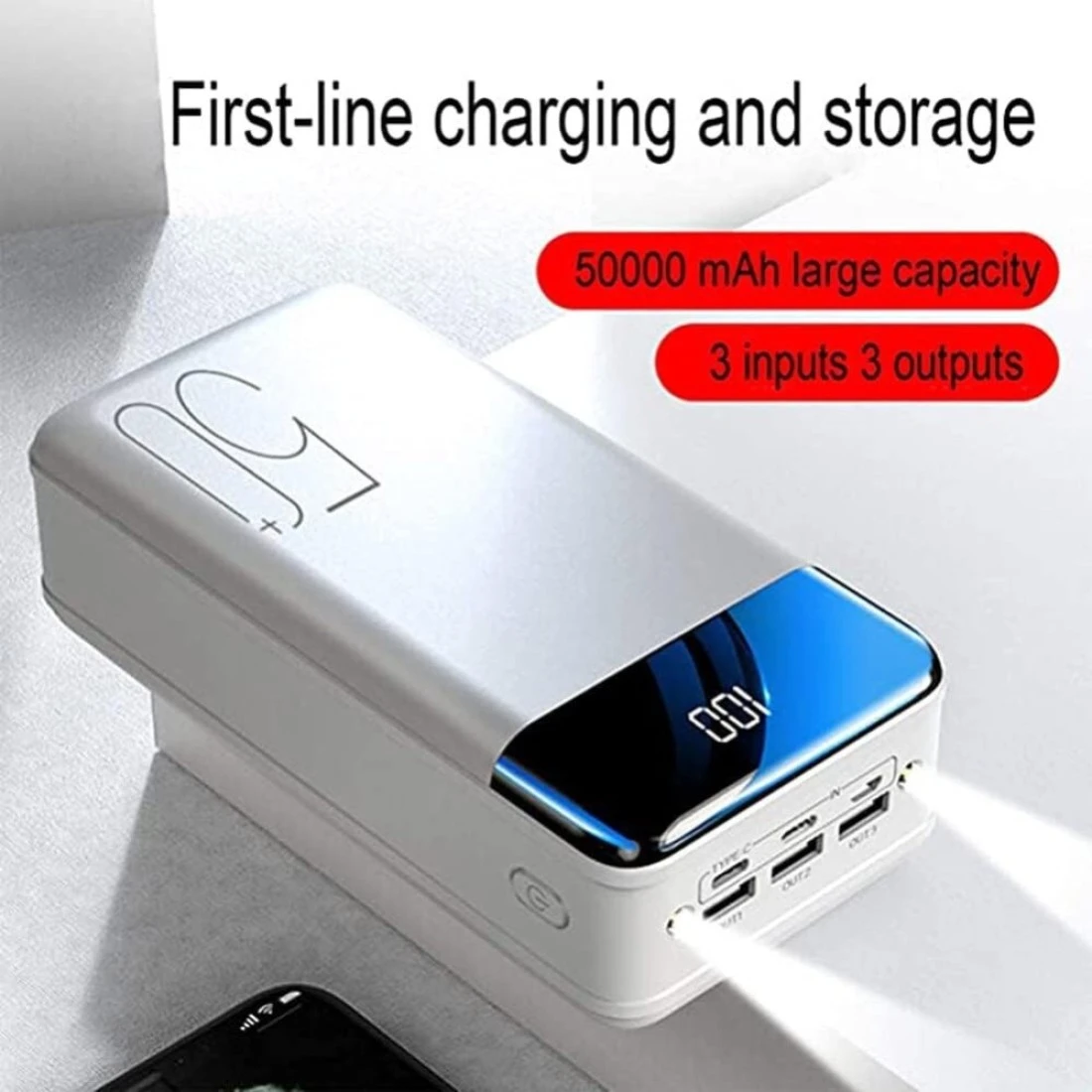 Power Bank 50000mAh Fast Charging with LED Display, High-Capacity Portable Charger, 3 USB Outputs & Flashlight, Compatible with iPhone, Samsung, Xiaomi, Huawei, Tablets & More