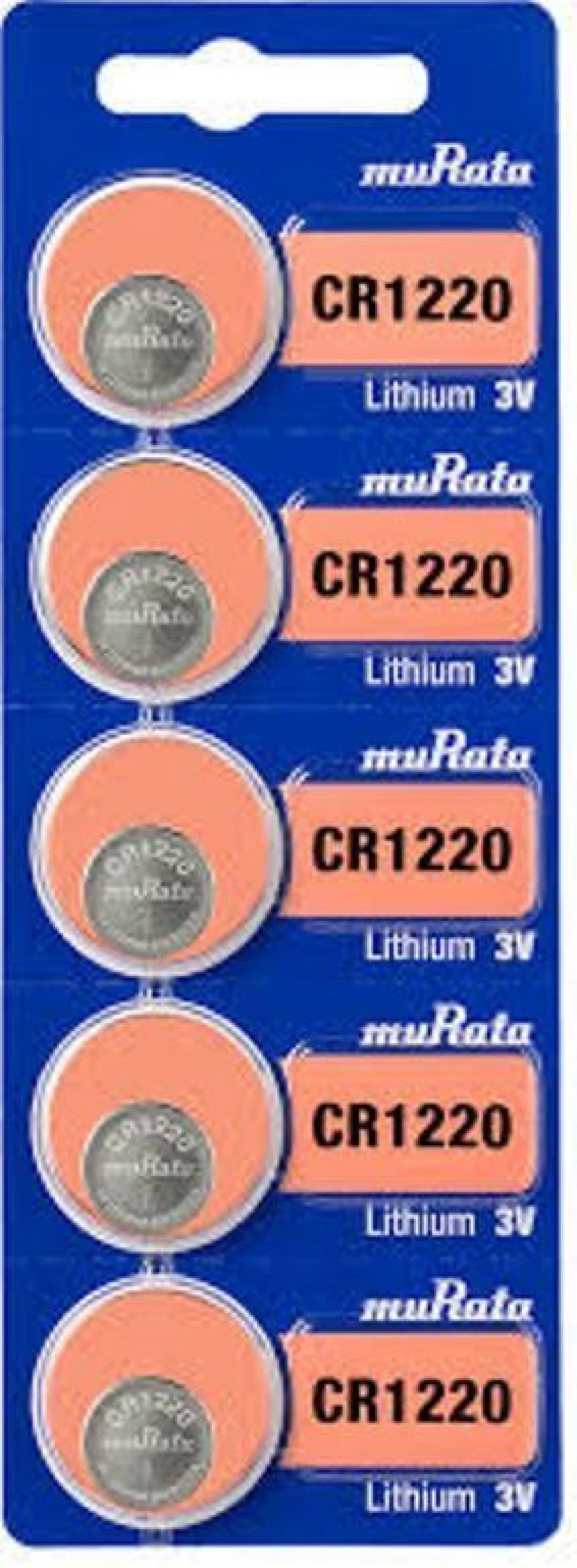 Murata CR1220 Lithium 3V (muRata) Batteries – 5 Pieces. Made in Japan