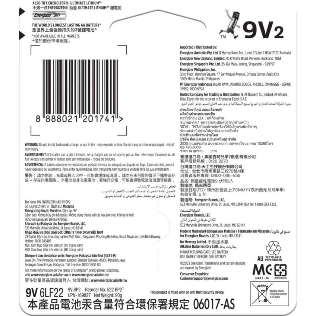 Energizer Max 9V Alkaline Batteries Pack of 2