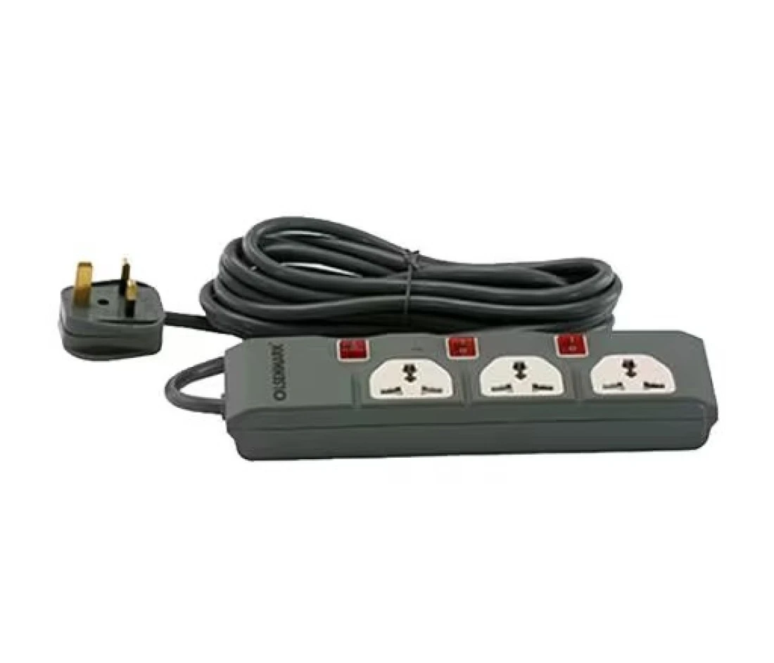 Olsenmark Extension Socket, 3 Way - Power up multiple devices at the same time with the Olsenmark extension socket. Made of durable, fire-retardant materials that is safe to use. Highly elastic phosphor bronze material gives the extension socket resistance to fatigue, wear, and corrosion. 3 universal sockets specially designed to accommodate plugs of different design and types, compatible with multi-country plugs. Rated Voltage: 240V 50/60Hz./p