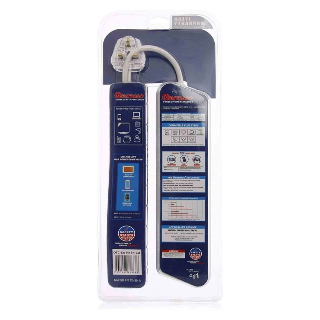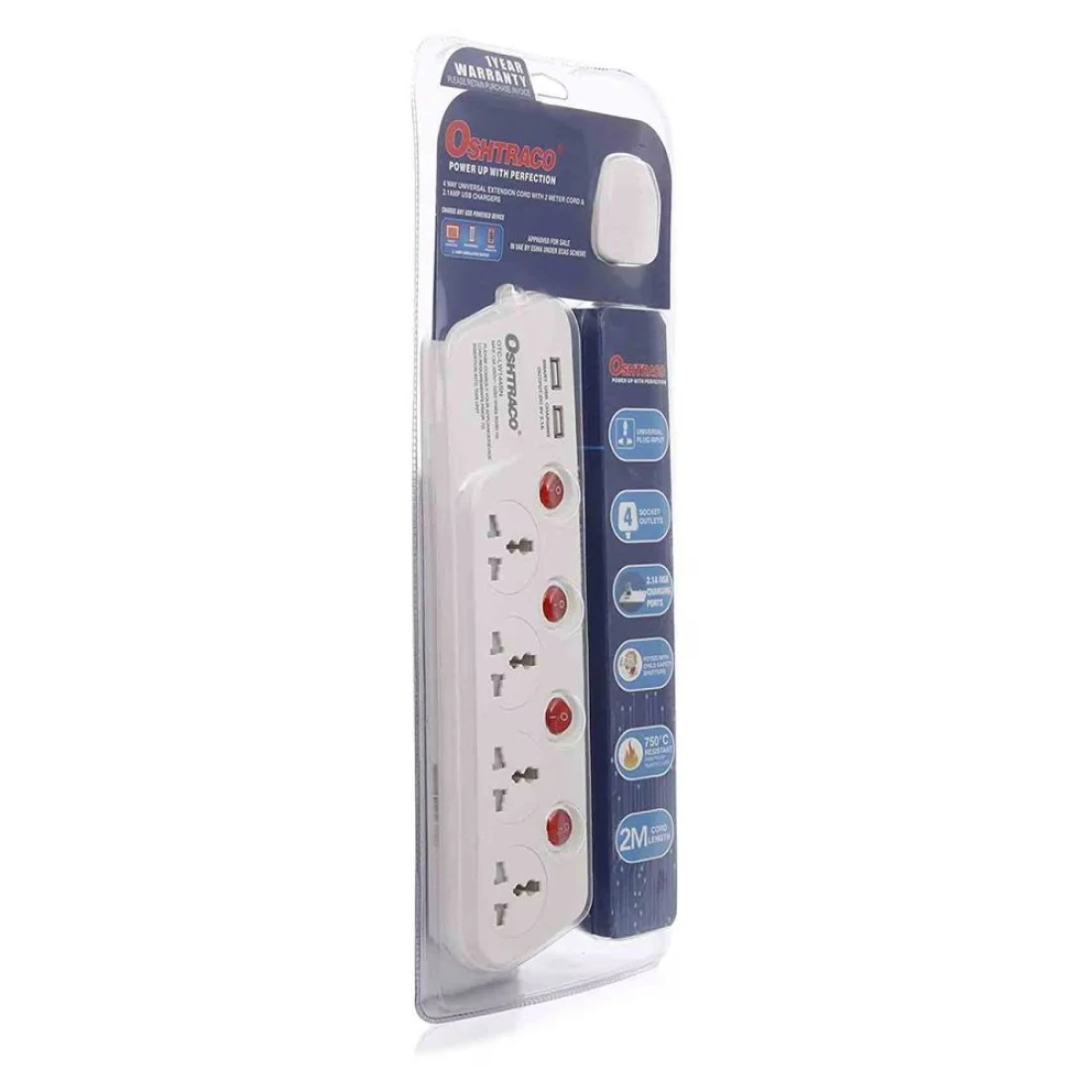 Oshtraco 4 Way Switch Extension Cord White 2m