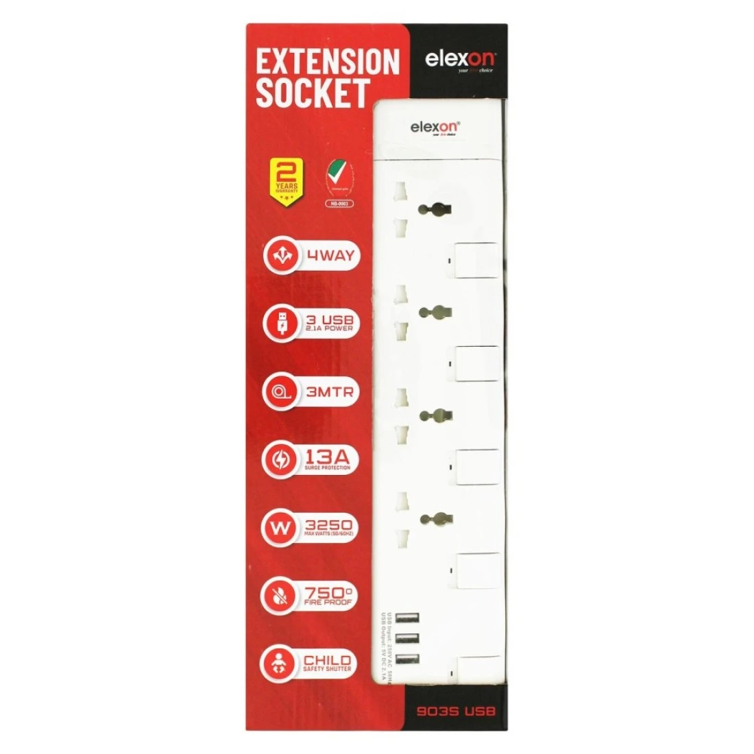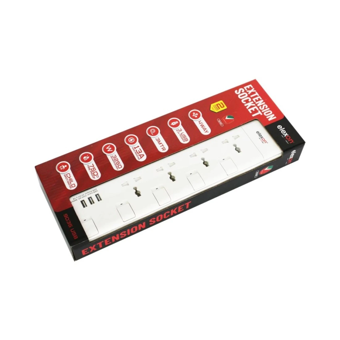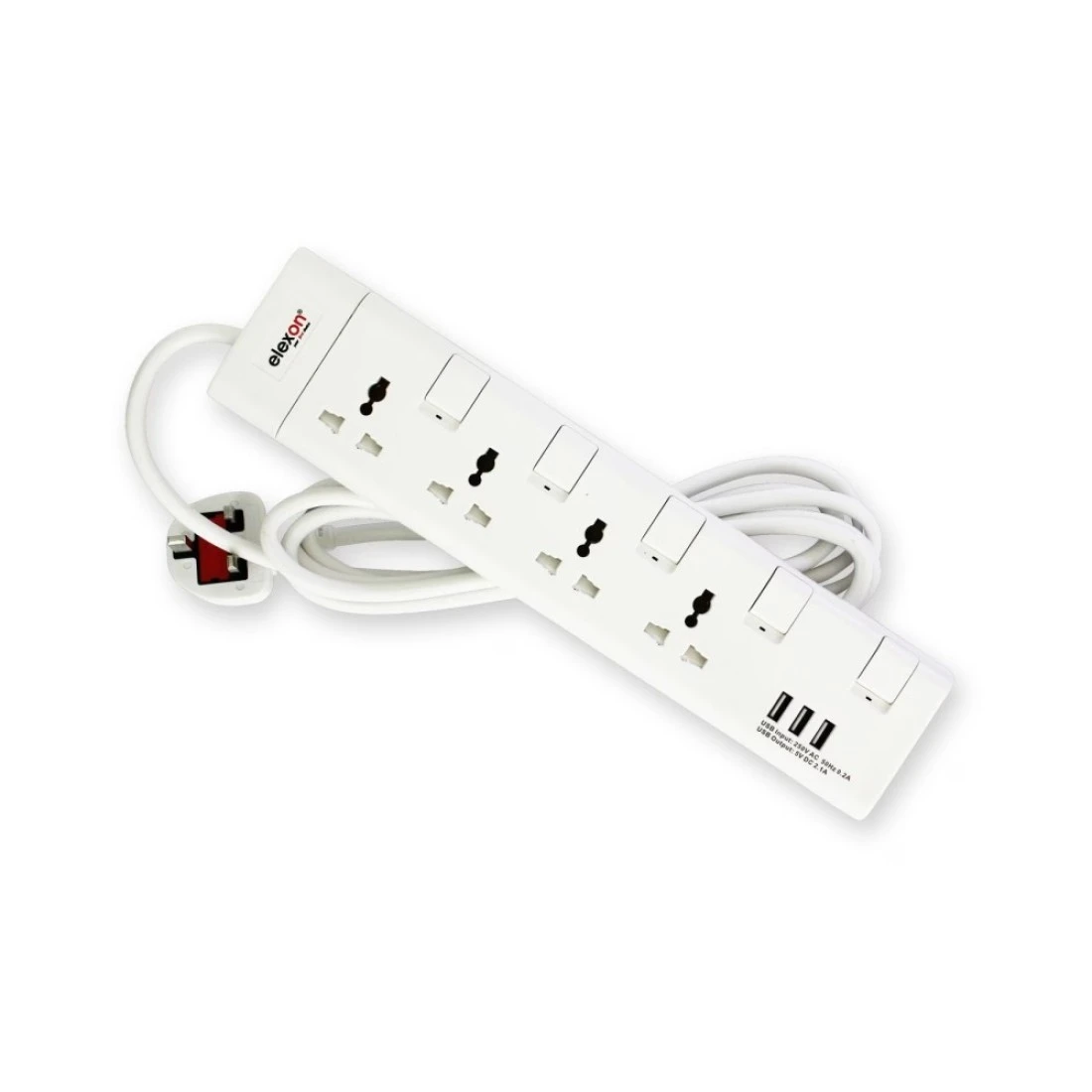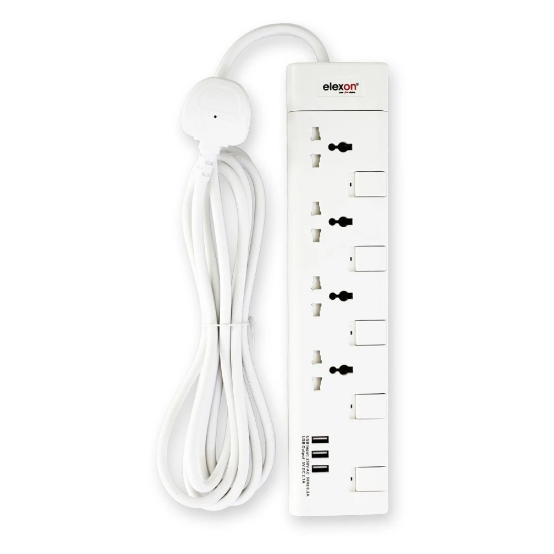 Elexon 4-Way Power Extension Socket With USB Port 13A El-903S White 2m
