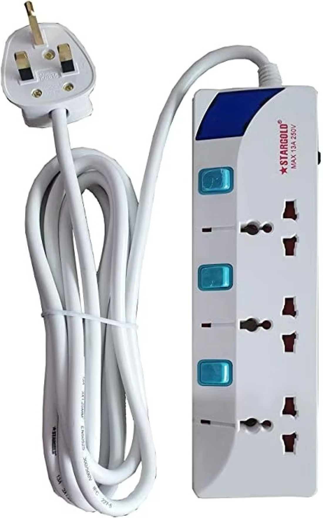 Stargold Extension Cord, Stargold Overload Protector Electric Charging Lead 3 Ac Output, 3250W/13A, 3*1.25Mm²/3M Long Power Cable, Heavy Duty Charging Station- White