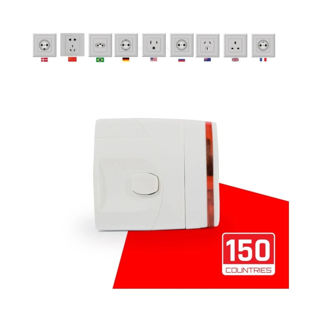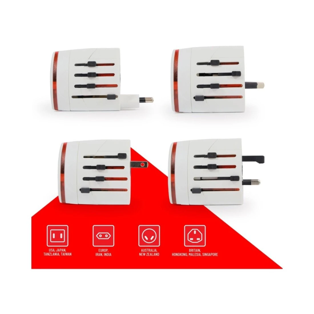 - The universal power adapter's built-in security door prevents users from touching the live parts directly, which can avoid electric shock