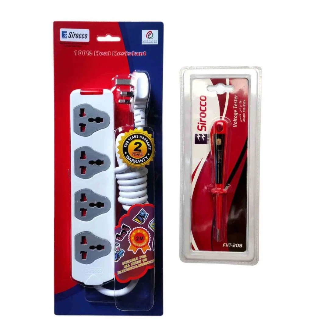 Sirocco 4-Way Power Extension Socket With Tester Multicolour 2m