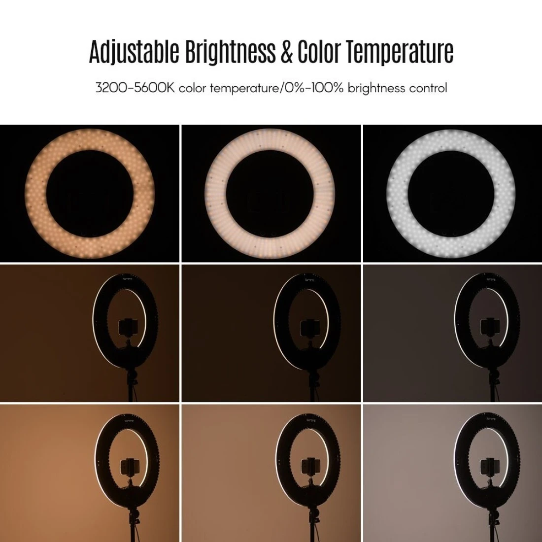 2 Power Supply Modes & Support USB Charging for Mobile Phone: It can be powered by power adapter or 2 lithium batteries can be placed in the video lamp, support NP-F Series Battery such as NP-F550/F970/F750 li-ion batteries. The ring light with USB port, support charging your phone through USB charging cable, convenient to use.(Batteries and usb charging cable are not included.)