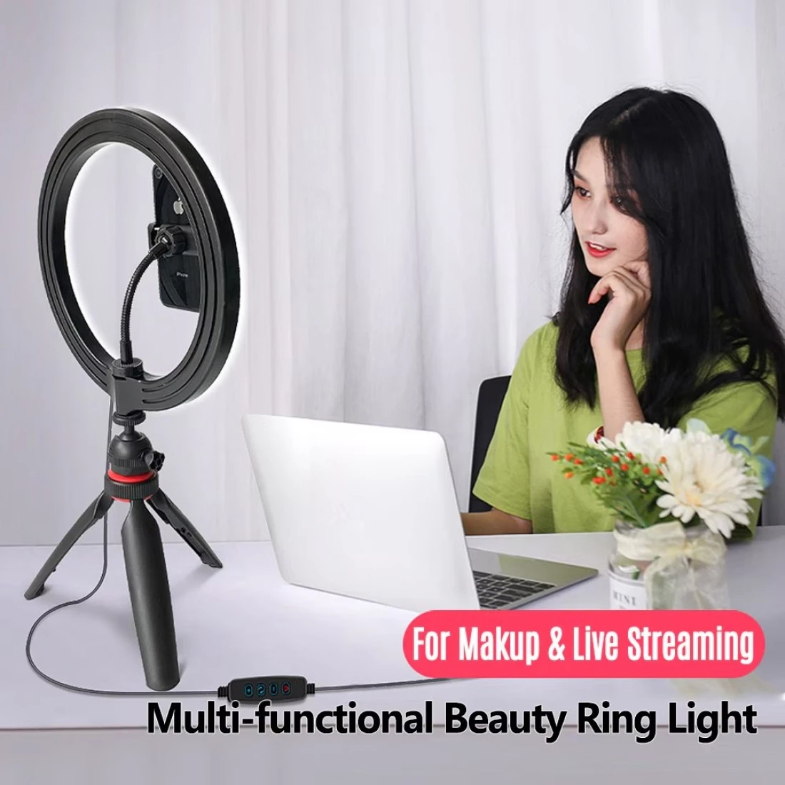 【Mini Tripod Stand & Flexible Ballhead】The mini tripod stand enables you to use the LED ring light on the tabletop stably; and the rotatable ballhead allows you adjust lighting angles freely.