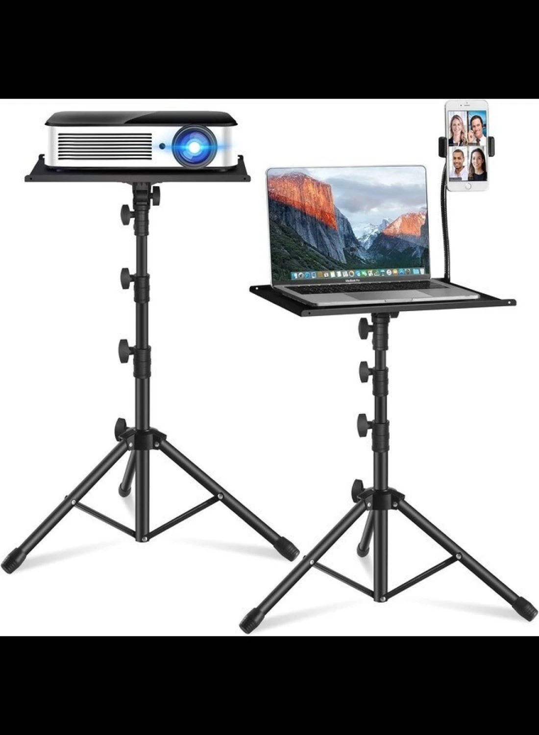 • Sturdy Construction: Stable tripod base ensures reliability and stability, supporting the weight of projectors, laptops, and other equipment securely during use.