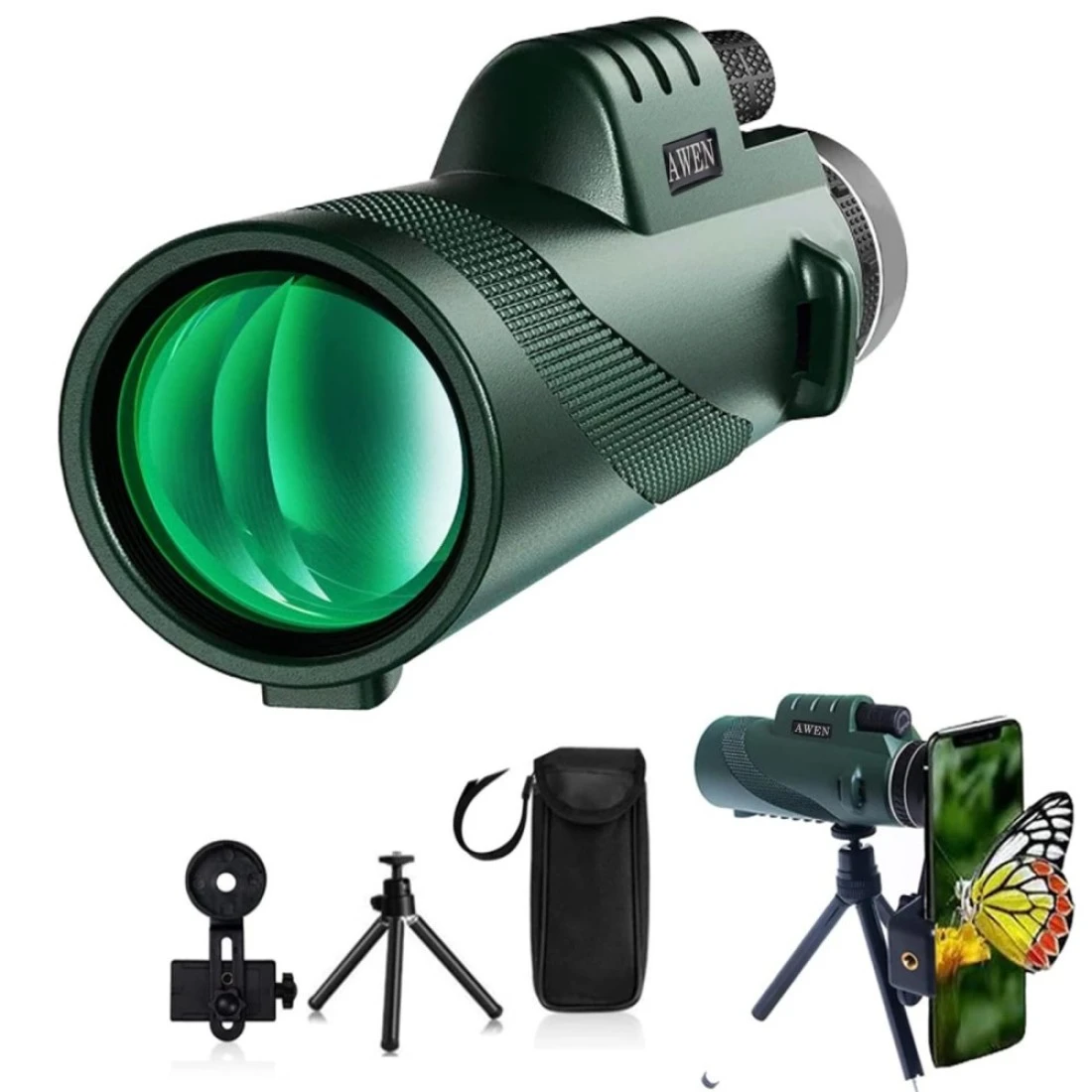 ã€Portable And Durable】O-ring sealed lens, durable rubber armour with stripes offer a non-slip grip, shockproof, dustproof, waterproof, lightweight, comfortable handheld telescope, easy to fit in your pocket and to have it everywhere., ã€HIGH-CONTRAST & RESOLUTION IMAGES】 - HD monoculars are equipped with BAK4 prism and FMC multi-layer broadband green film lens, providing excellent light transmittance and brightness and the light transmittance reaches up to 99.9%. The coating design is upgraded to effectively improve the clarity and color. 40mm large eyepiece with high brightness, making viewing more comfortable, take 100% Advantage Of 60mm Objectve Lens, Collect More Lights, Deliver Brighter View., ã€HIGH QUALITY & WATERPROOF AND FOG PROOF】 - This monoculars for adults are made of ABS plastic steel, adopts an O-ring sealed with dry nitrogen to prevent moisture, dust and debris from entering the night vision scopes. The focusing wheel of monoculars is protected by high-quality rubber, which is comfortable and durable., ã€SINGLE HAND FOCUS & COMFORTABLE CONVENIENT】 - When using the handheld telescope, adjust the sharpness first, adjust the eyecup and the roller to focus, until you see a clear and bright image. The monocular telescope easy to carry, designed for any outdoor sports enthusiasts, monocular telescope for smartphone suitable for hunting, bird watching, hiking, traveling, concerts, sports events, etc., ã€You will get】1*Monocular,1*Smartphone Holder,1*Stainless Steel Tripod,1*Cloth Bag,1*Dust cover,1*Cleaning Cloth,1*Straps,1*User Manual;Please feel free contact us if have any problem.We're always at your service.