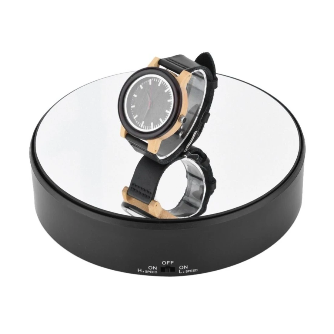 Rotating Display Stand, Speed Adjustable Electric 360° Turntable Display Holder Mirror Motorized Revolving Base Battery Powered for Displaying Jewelry Watch Digital Photography