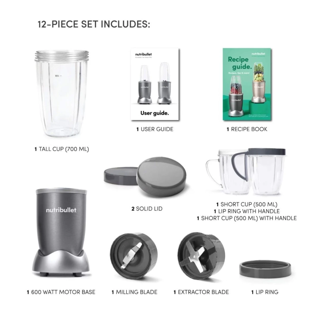 Nutribullet Smoothie Maker NBR-1212m Grey 600W Set of 9
