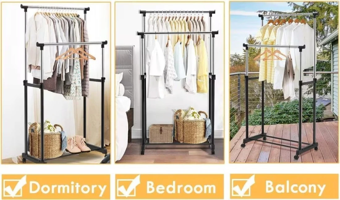 Fitto Clothes Drying Foldable Stand - Adjustable & Space-Saving, Black, Portable Laundry Rack for Indoor & Outdoor Use