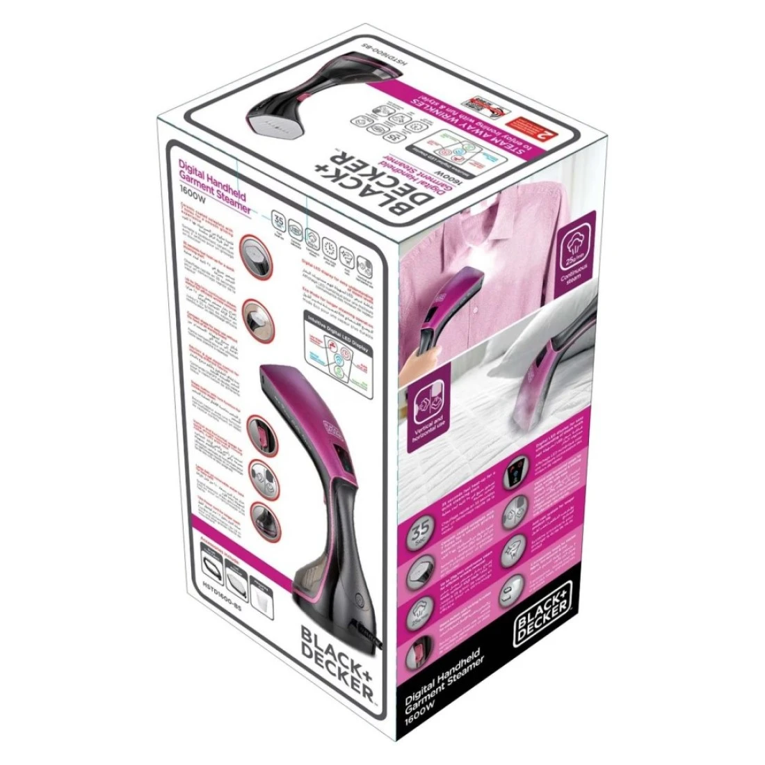 Black & Decker Digital Handheld Garment Steamer HSTD1600-B5 Black and Pink 1600W