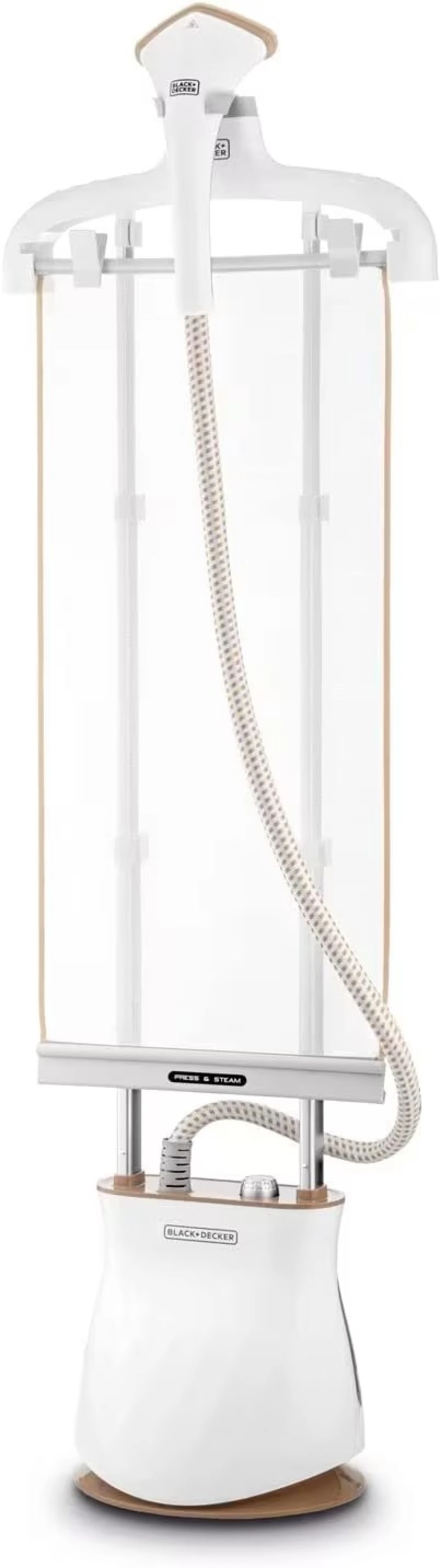 Black + Decker Upright Garment Steamer, 2400W, 1.5L, 35gm/Min Steam, Multiple Attachments, GST2400-B5 (Adjustable Double Poles Rotary Wheels, For Quick Wrinkle Free & Santized Garment)