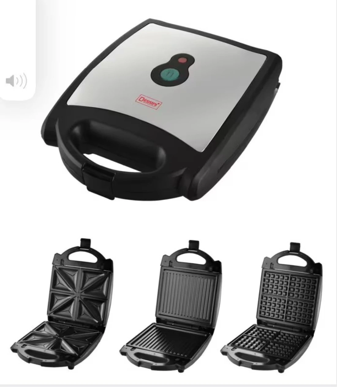 Country of Origin: ChinaInstallation: Countertopnergy Used: ElectricNumber of Slices: 4 SlicesMaterial: CombinationProduct Length: 32cmProduct Height: 12cmProduct Width/Depth: 26cmWattage: 1400 WColour Name: silver/blackWhat's In The Box: 1x sandwich maker, 2x triangle plates, 2x waffle plates , 2xgrill plates.Indicator LightsBusinessErgonomicMulti-FunctionPersonal3 in 1 detachable plates 4 slice sandwich makerWith triangle plates, waffle plates and grill platesNon-stick coating plate for easy cleaning With triangle platesCool touch housing and Skid-resistant feet