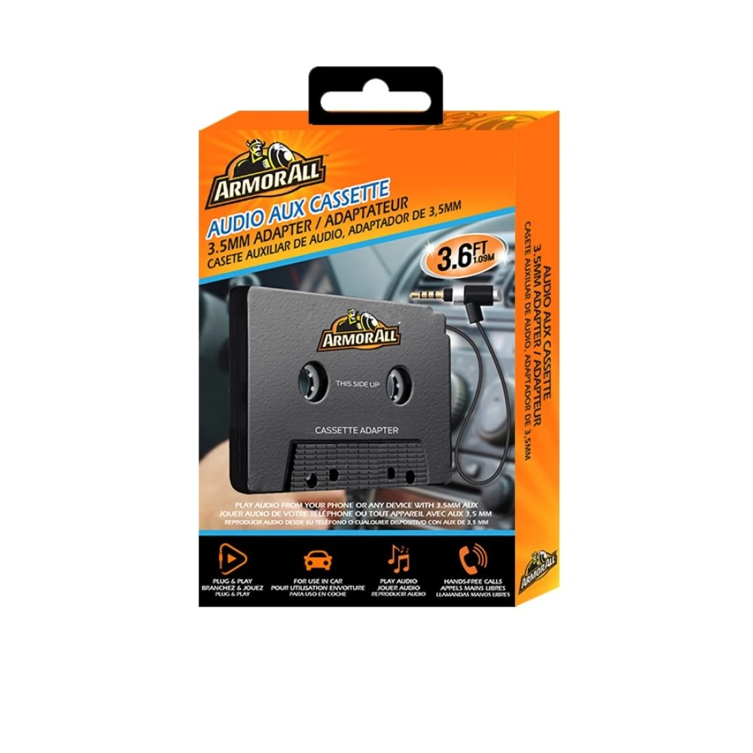 Armor All Audio Aux Cassette 3.5mm Adapter, Connect Smartphones/Tablets/Other Items With The Wire, Plug/Answer Button For Calls/Scrolling Through Music Tracks, etc., Easy-To-Install