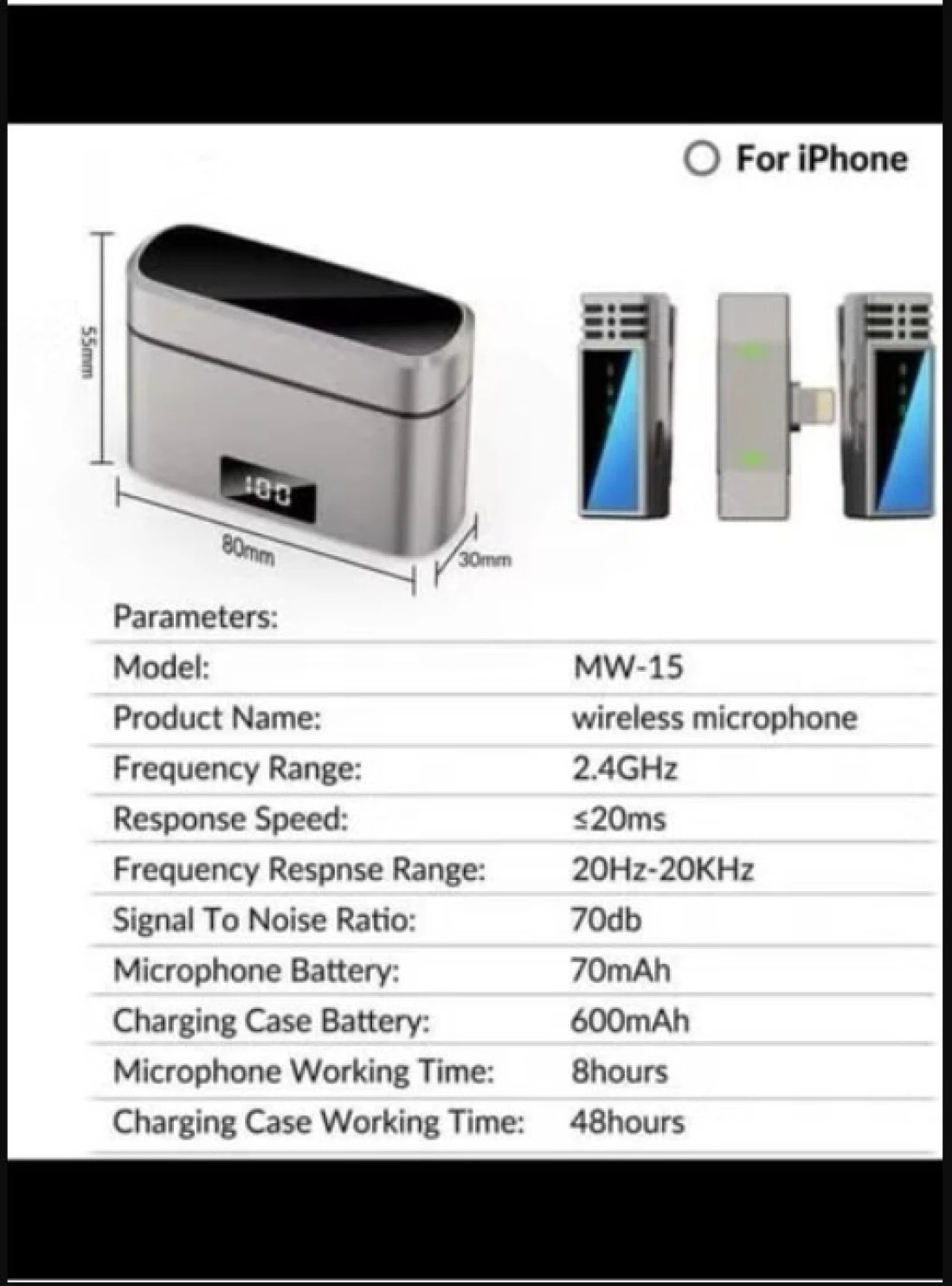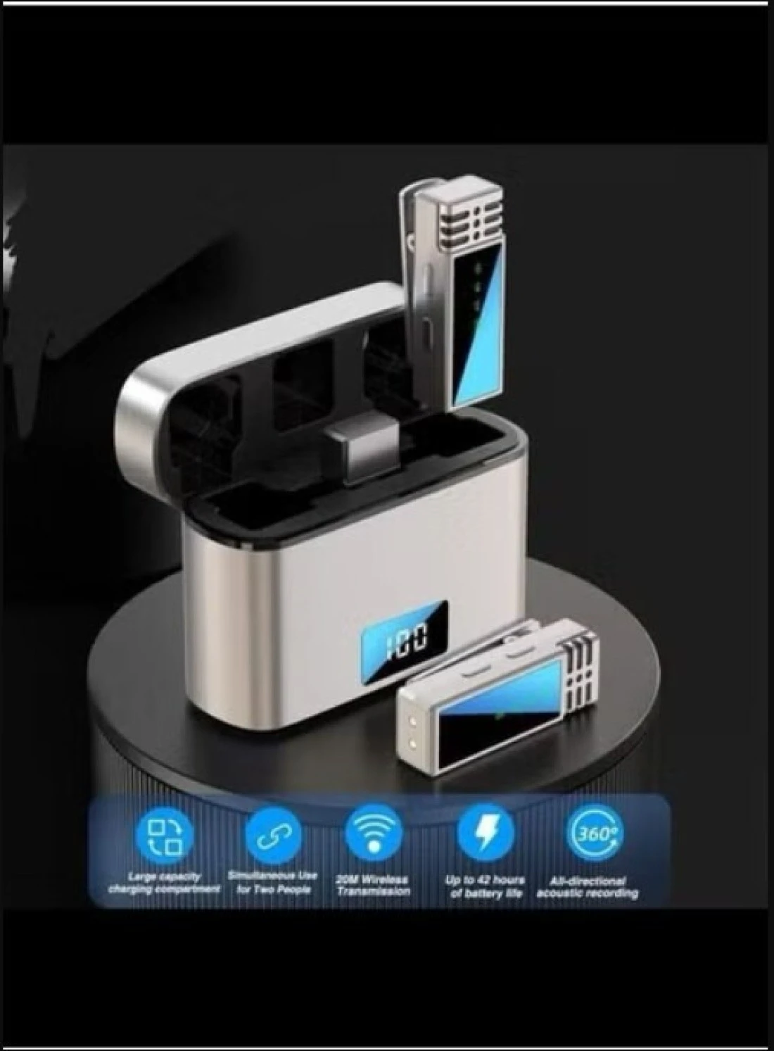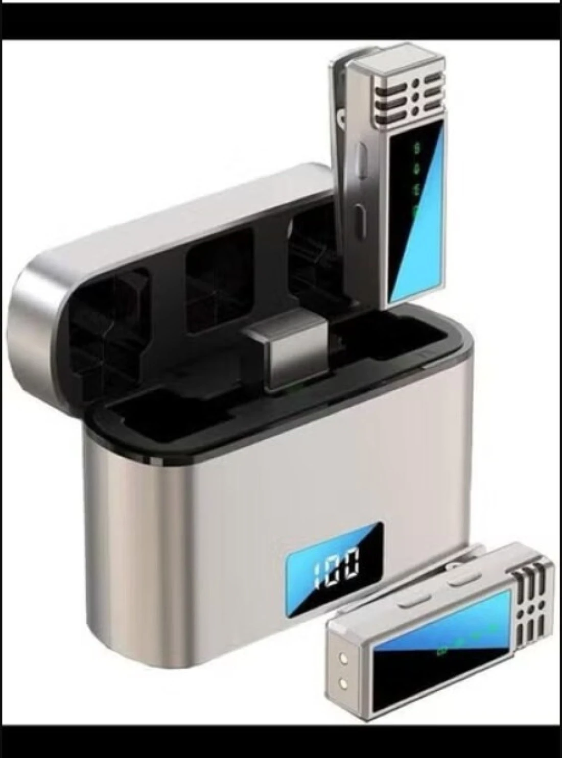 • Charging Case: Includes a convenient charging case that not only stores the microphones securely but also doubles as a portable charger