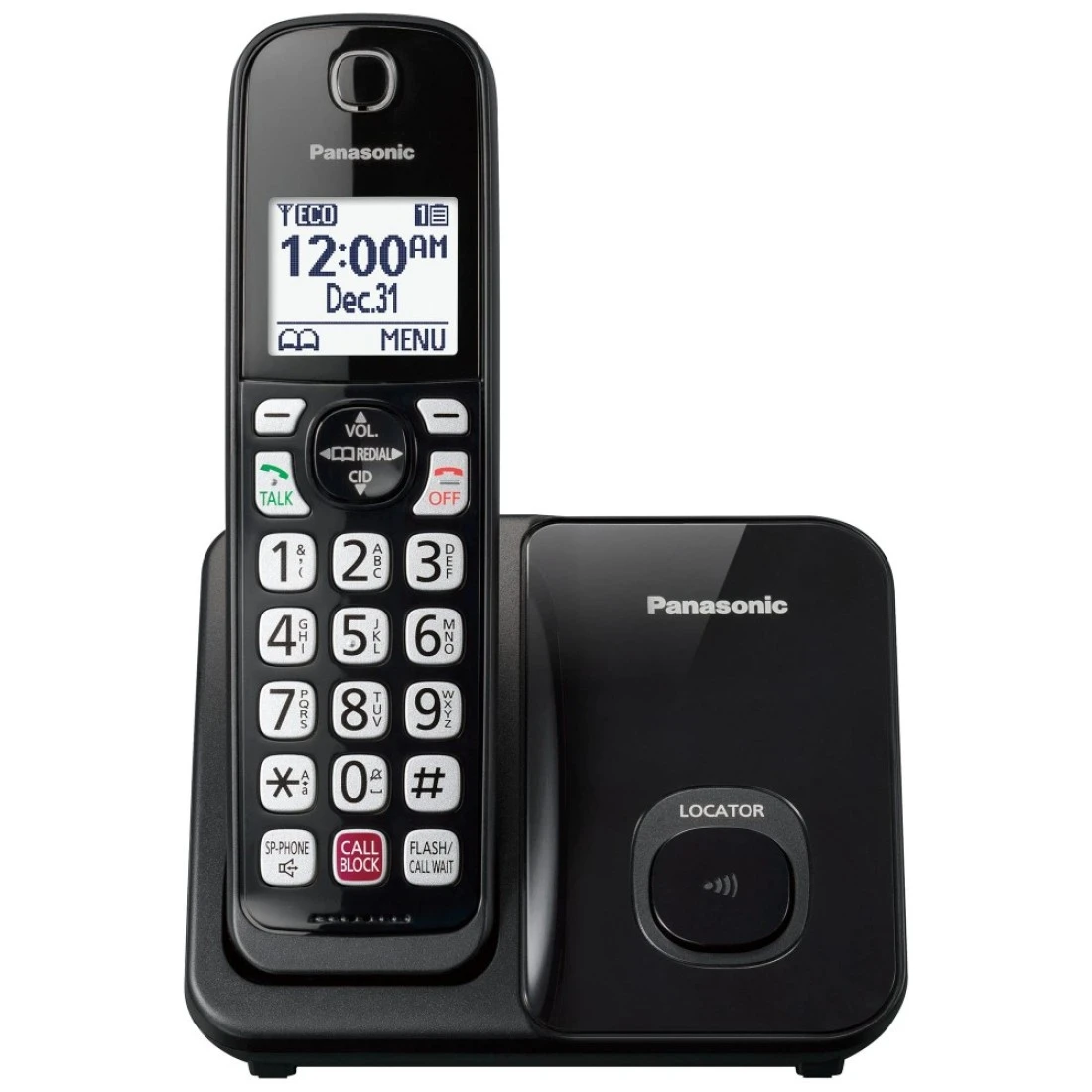 Panasonic Cordless Phone with Advanced Call Block, Bilingual Caller ID and Easy to Read Large High-Contrast Display, Expandable System with 1 Handset - KX-TGD810B (Black)