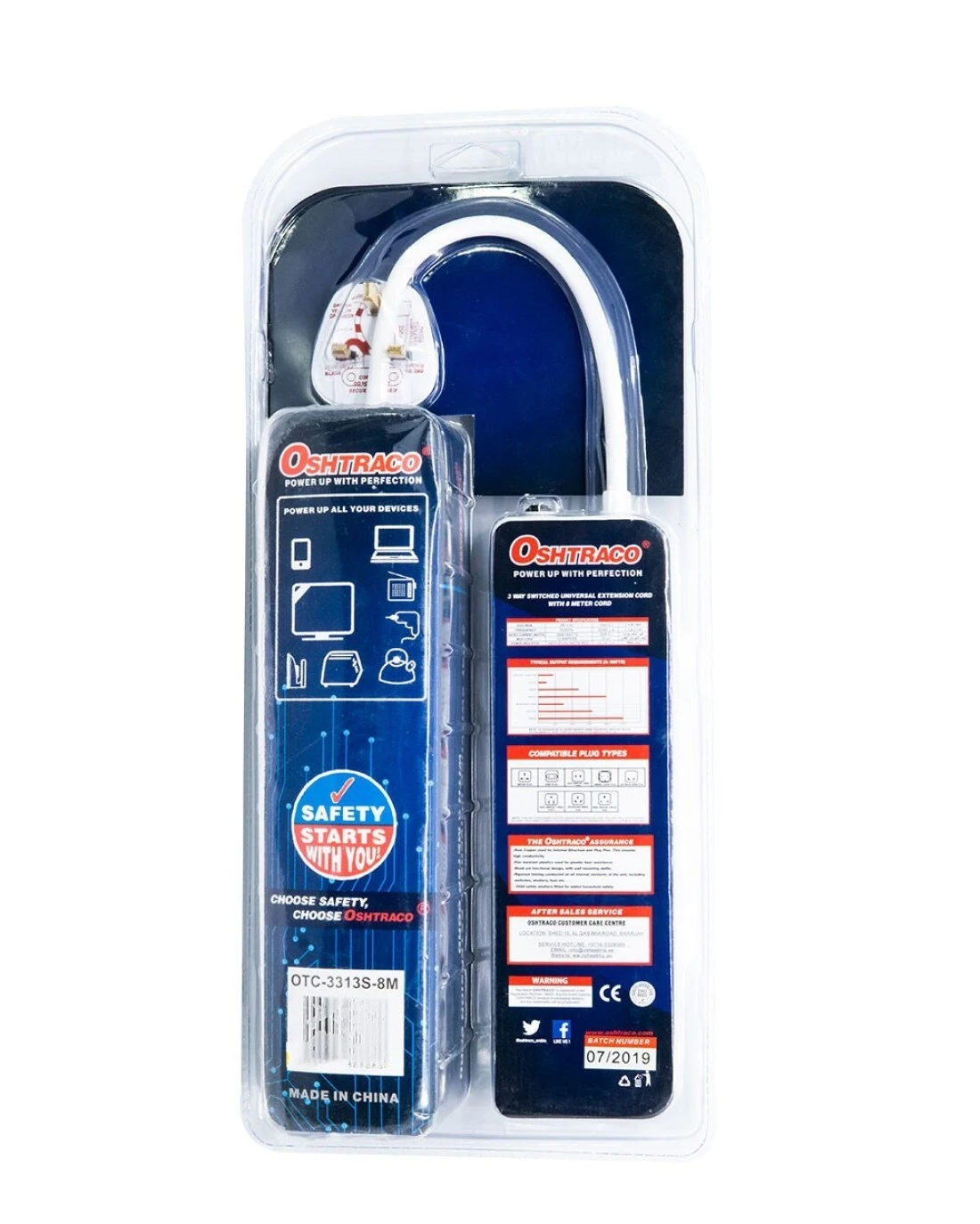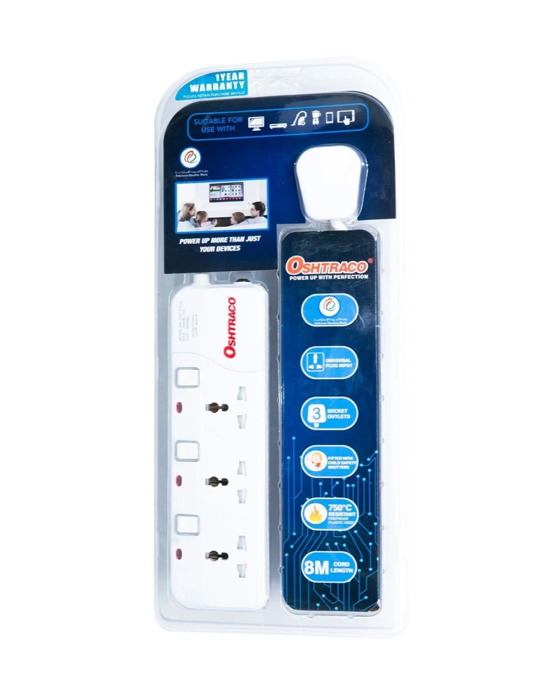 Oshtraco 3 Way Switch Universal Extension Cord With 8M Wire
