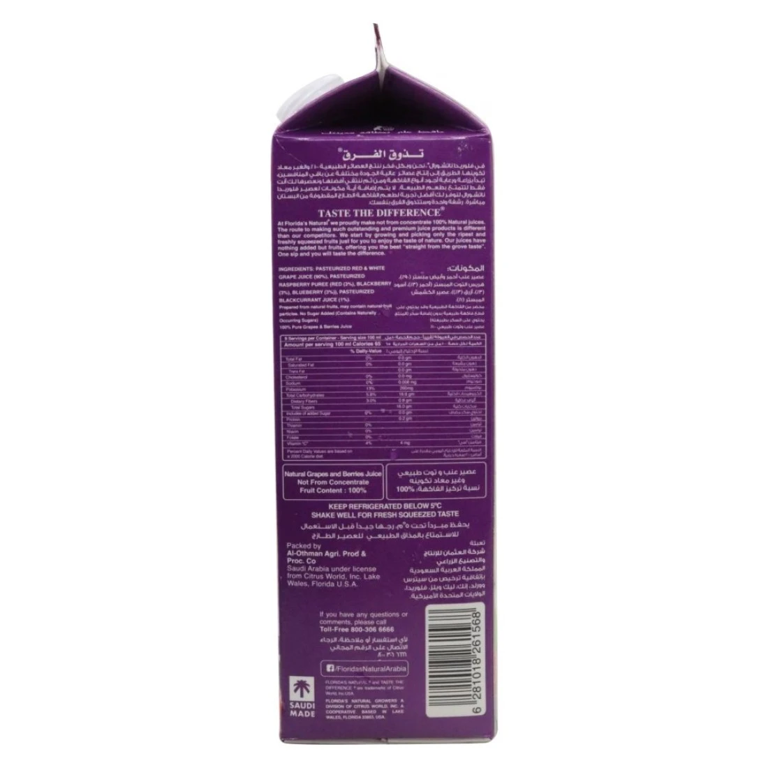 Florida's Natural Premium No Sugar Added Grapes And Berries Juice is a delicious and refreshing beverage option. Made with real fruit juice, this 900ml bottle is packed with the natural flavours of grapes and berries. The best part is, it has no added sugar, making it a healthier choice for those watching their sugar intake. Enjoy this juice on its own, or use it as a base for smoothies and cocktails. It's the perfect way to quench your thirst and satisfy your craving for a fruity drink.