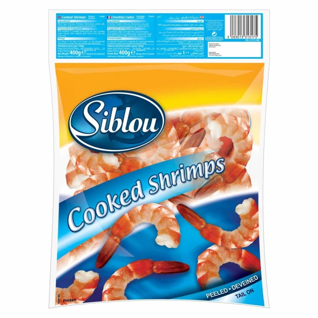 Siblou Large Cooked Shrimps 400g are succulent and ready-to-eat shrimps that have been cooked to perfection. These shrimps are sourced from the finest oceans and are carefully cleaned and cooked, preserving their natural flavour and texture. With their large size and delicious taste, they are an ideal addition to any seafood dish or can be enjoyed on their own as a scrumptious appetizer.