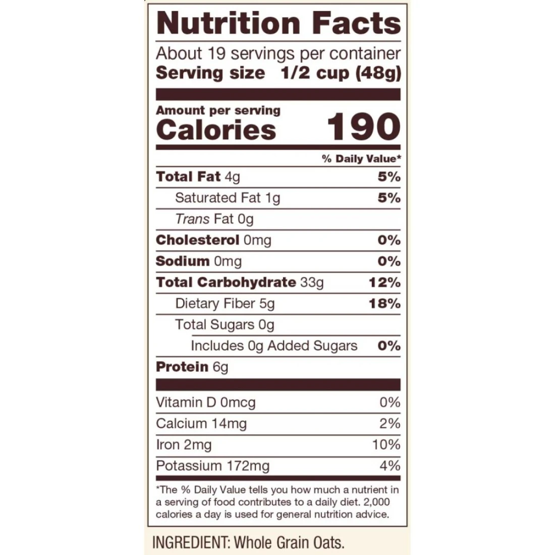ingredients : Organic Whole Grain Oats