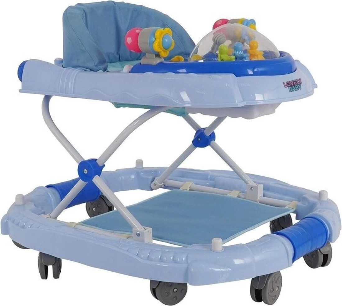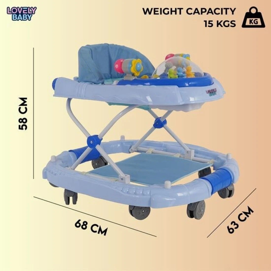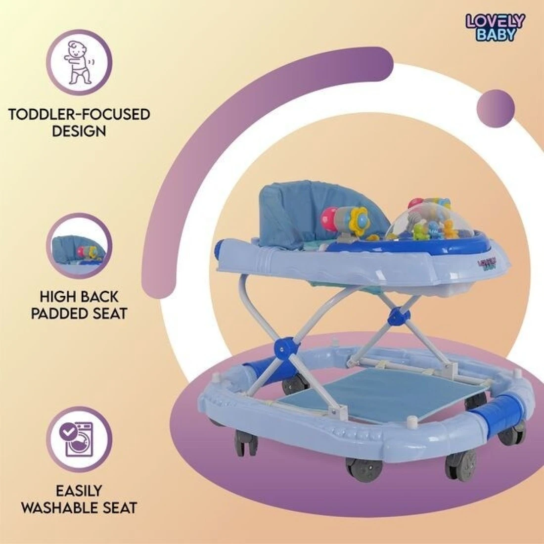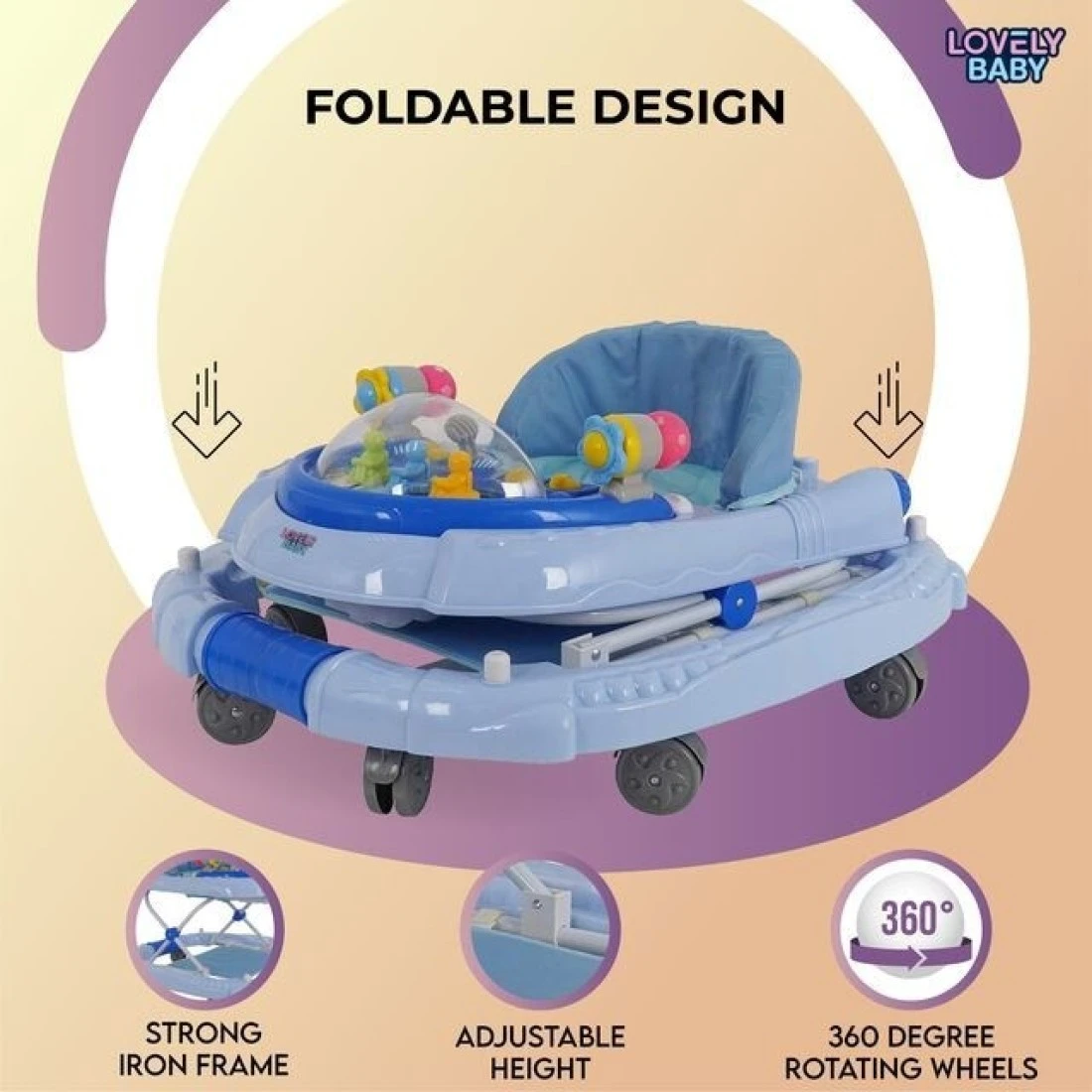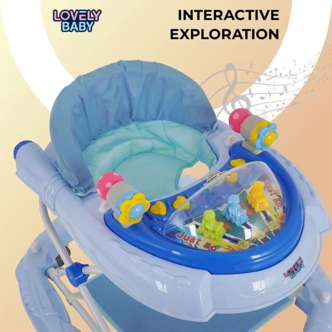 Lovely Baby Foldable Kids Walker BW04 with Adjustable Height, Musical Toys, Rotating Wheels, Comfortable & Safe Activity Walker for Toddlers, Small Infant Boy Girl 6-18 months - Blue