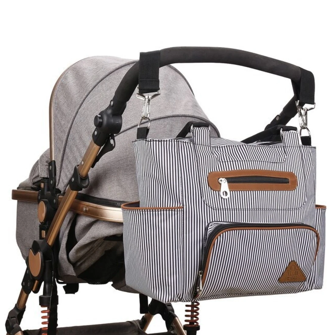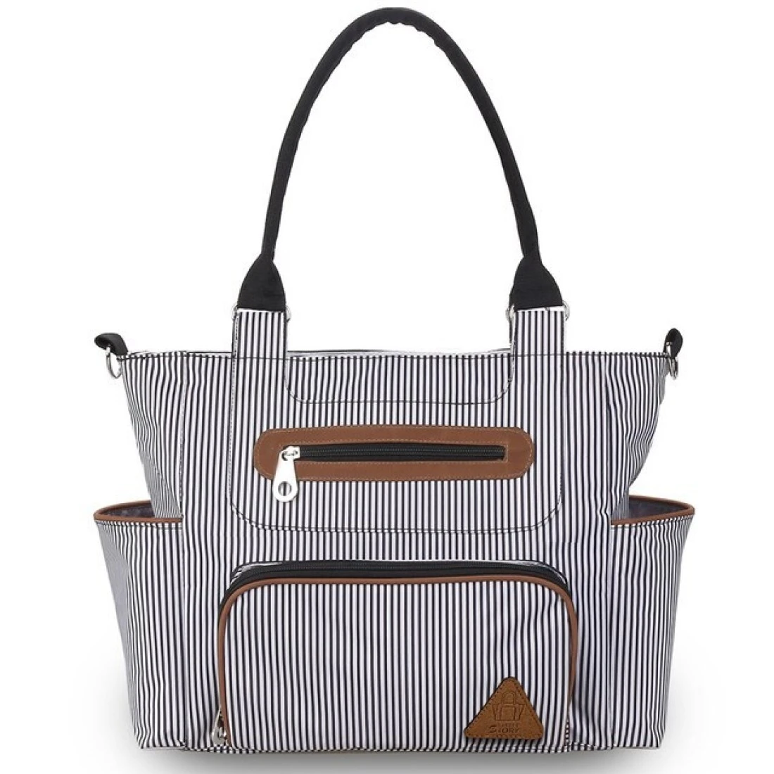 Little Story Diaper Bag Set Includes (1) diaper bag, (2) personal purse with carrying strap, (3) changing pad, (4) accessories bag, (5) organizer bag with mesh top, (6) insulated bottle bag, (7) stroller straps
