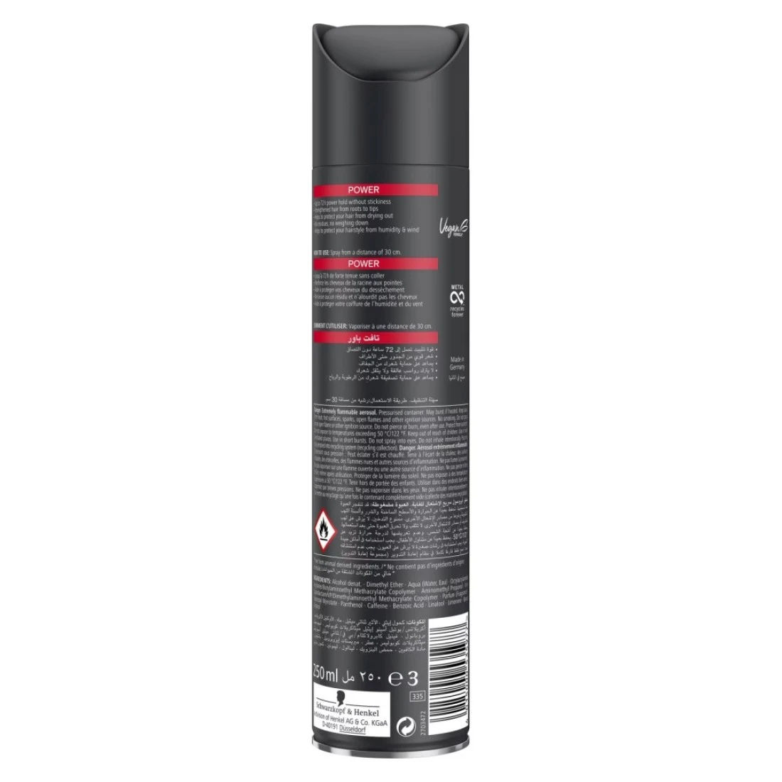 Taft Power Caffeine Hair Spray is a mega-strong lacquer that gives your hair styling the final kick and ultimate hold! The mist formula is specially formulated to offer the combination of a fine controlled mist with super-setting properties. This spray is great for all hair types and helps you get your desired hairstyle in a go with up to 3 days of hold without stickiness or residues. provides 4 times more hold when compared to other hair care products. Helps to protect the hair from drying out without weighing it down.