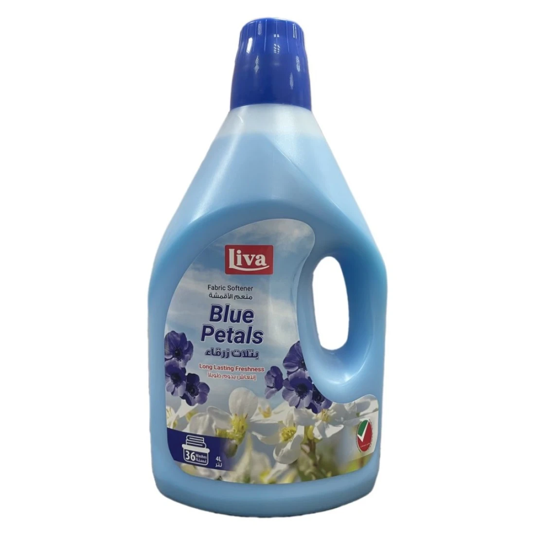 Liva Fabric Softener Dilute Blue Petals is a high-quality fabric softener that comes in a 4-liter bottle. It is infused with a refreshing Blue Petals scent that leaves your clothes smelling fresh and clean. This fabric softener helps to reduce static cling, making your clothes feel softer and more comfortable to wear. It also helps to minimize wrinkles and make ironing easier. With its dilute formula, a little goes a long way, making it an economical choice for softening and freshening your laundry.