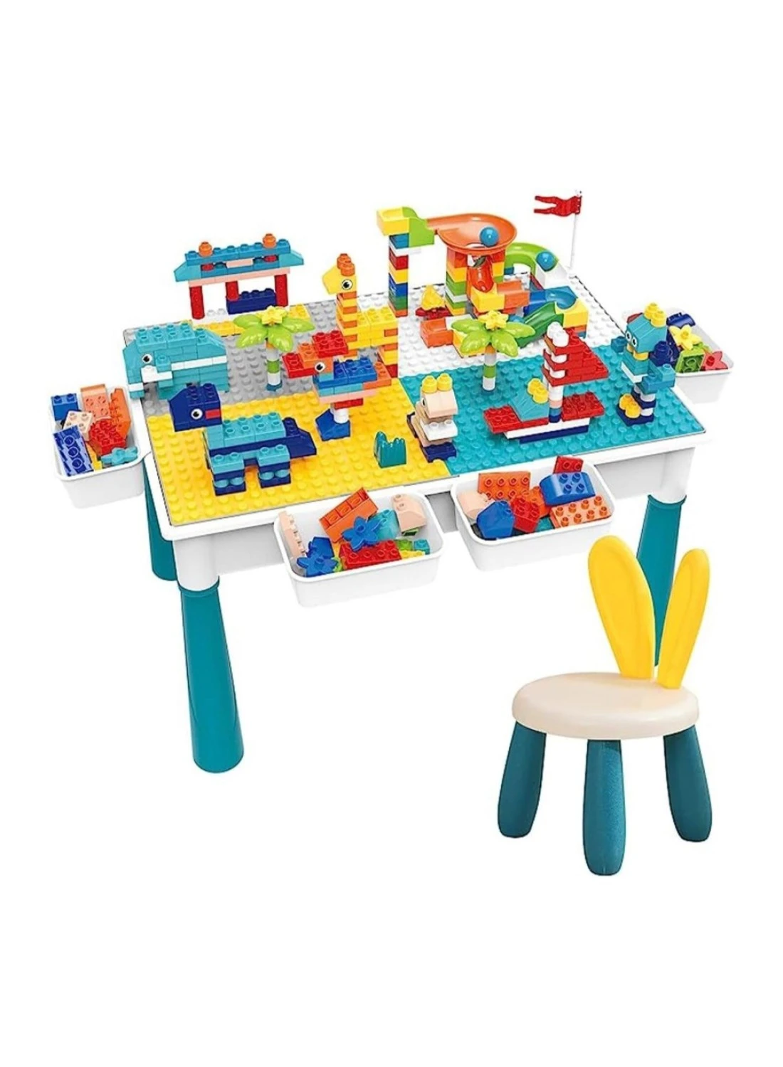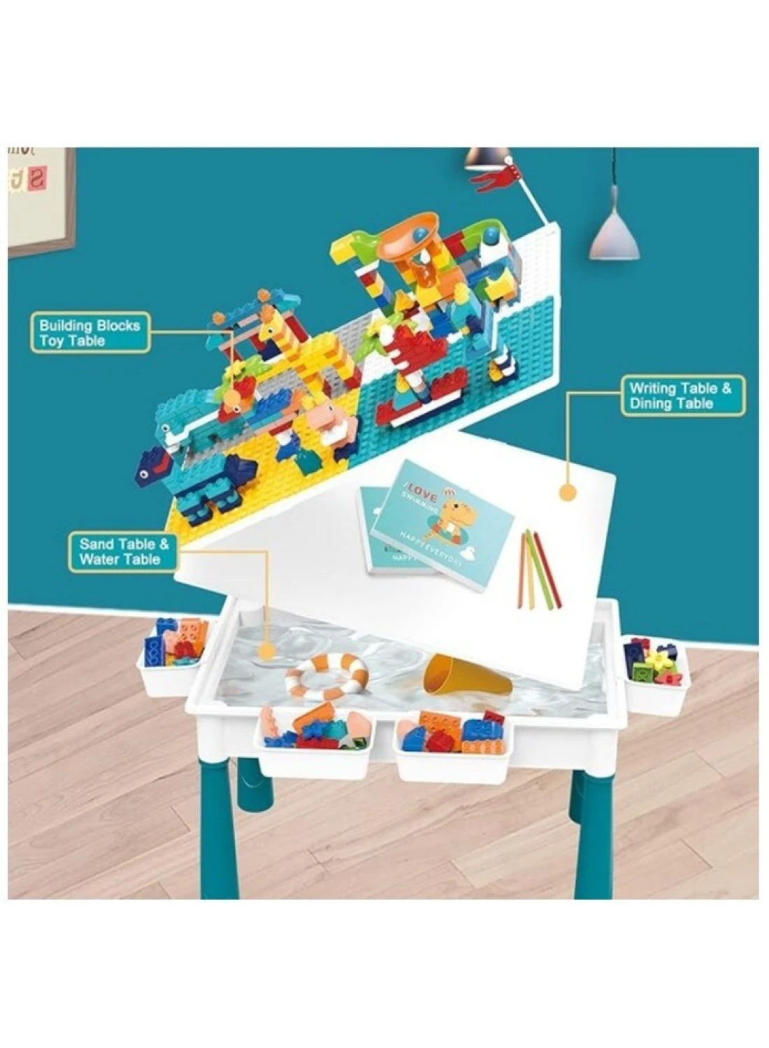 Table surface is made of double sided can be used as a building block table,craft table,water and sand play table,reading and learning table,toy storage table and traditional table