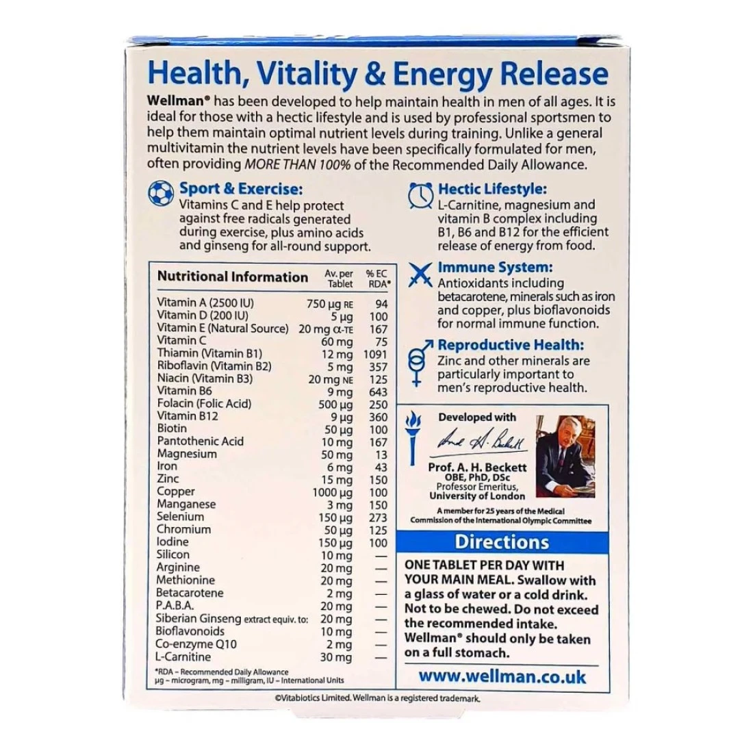 Vitabiotics Wellman Original Tablets For Men of All Ages 30 Tablets