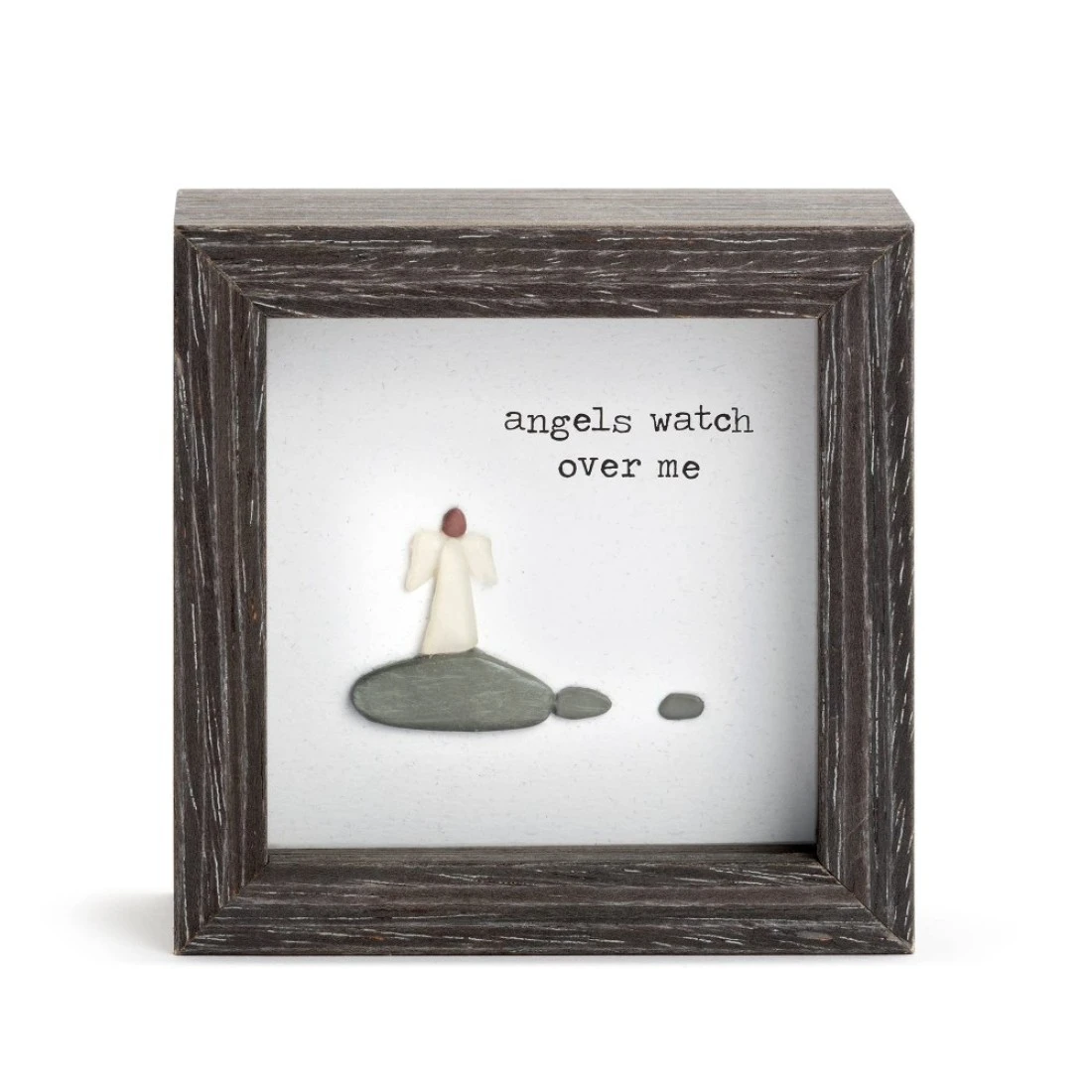 DEMDACO Sharon Nowlan Angels Watch Over Me Dark Woodgrain 4 x 4 Wood and Glass Shadow Box