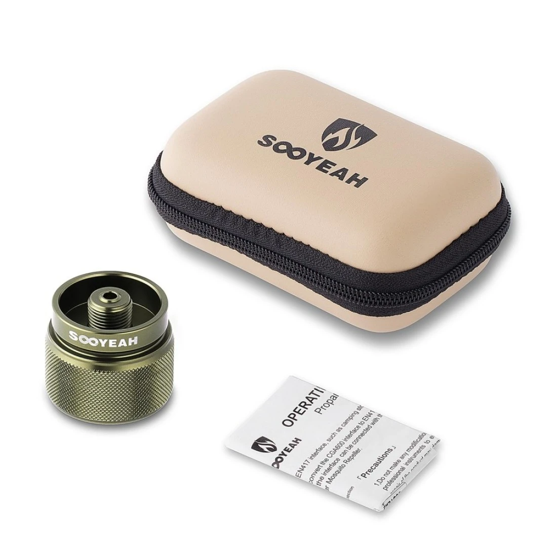 SAVE MONEY: 1LB Propane Gas is cheaper and easier to find on the market than isobutane gas., STORAGE SAFETY: Storage bag is included, which provide safe storage space when the product is not in use, avoid loss due to disorderly placement., HIGH COMPATIBILITY: This adapter is compatible with most canister stoves , gas lanterns , and Backpacker Mosquito Repeller., SAFE WITH NO LEAKS: The adapter has built-in AUTO-OFF system, when the adapter is not connected with the devices , it will be in the auto-off state avoiding gas leakage., COME WITH INSTRUCTION:Assure that adapter is correctly installed before use.