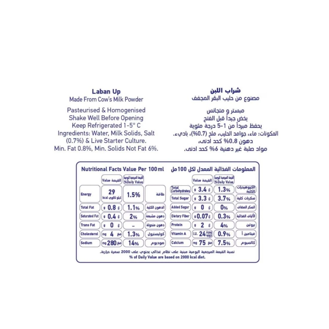 Safa Laban Up Drink is a refreshing and nutritious beverage that comes in a 200ml pack of 12. Made with natural ingredients, it is a perfect choice for a quick energy boost. Whether you need a pick-me-up during a busy day or after a workout, Safa Laban Up Drink will quench your thirst and provide you with the essential nutrients your body needs. Enjoy the delicious taste and the health benefits of this convenient and portable drink.