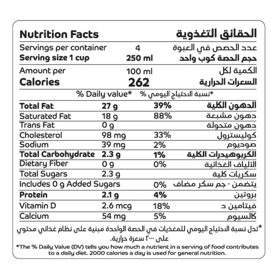 ingredients : Fresh Cream, Emulsifier (E471), Stabilizer (E407), Vitamin D3.