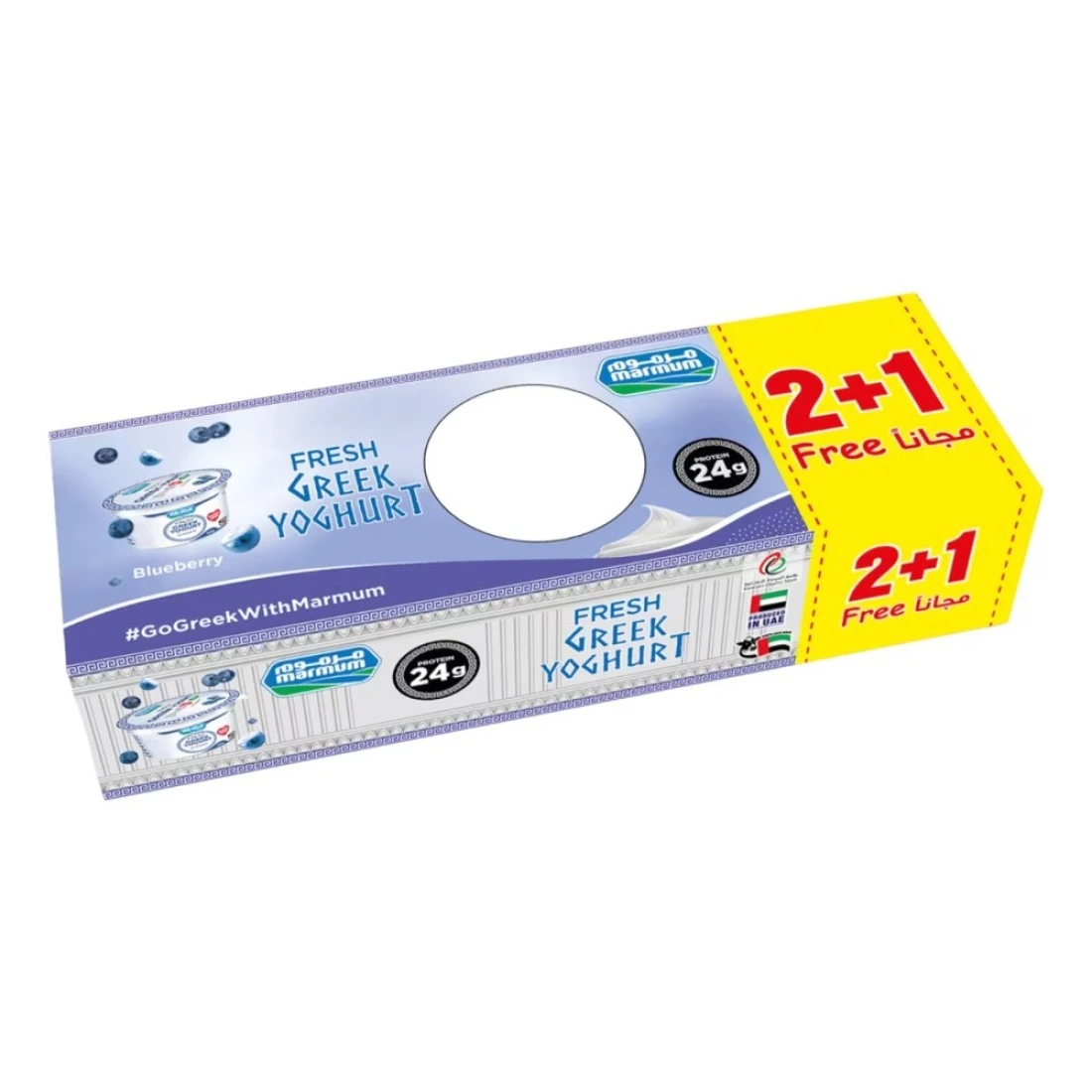 Marmum Fresh Greek Yoghurt Blueberry is a delicious and creamy yogurt made with real blueberries. This pack contains 3 individual 150g servings, perfect for a quick and healthy snack on the go.